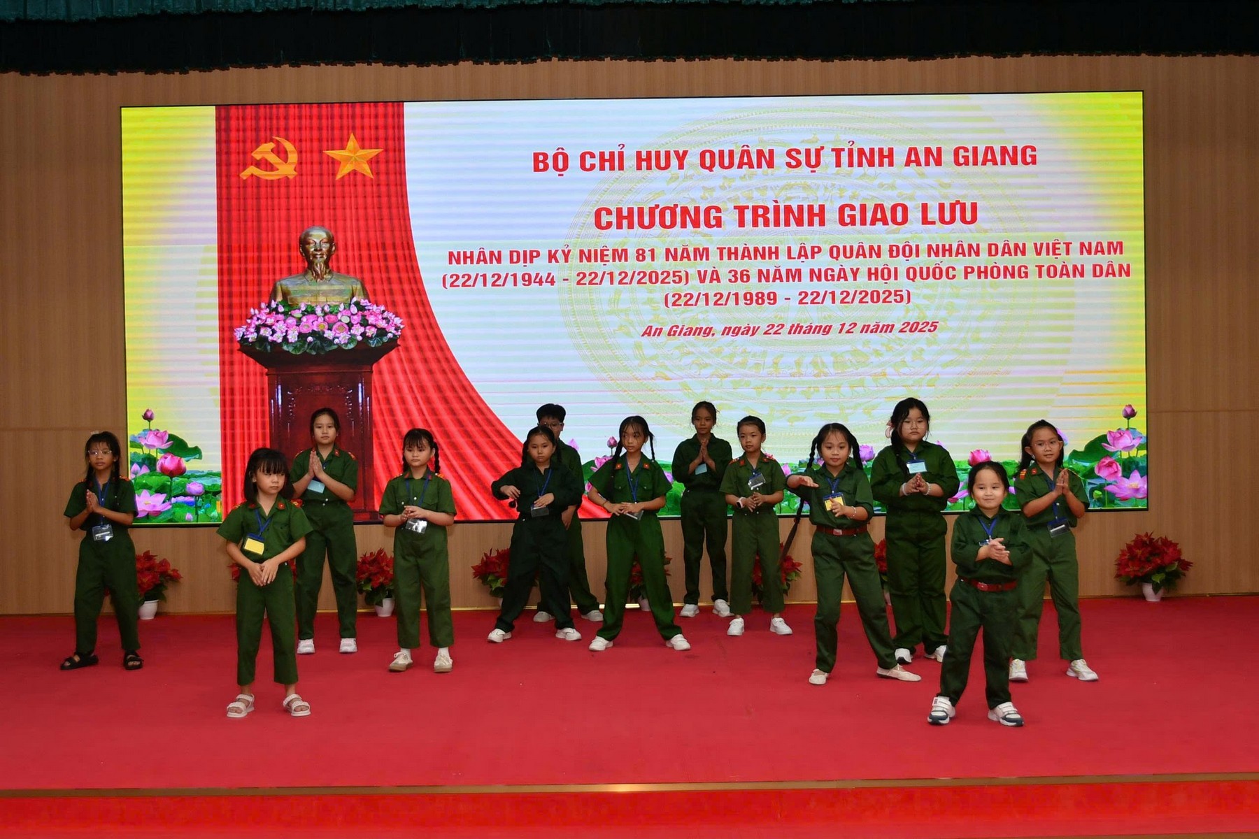 (Cổng TTĐT tỉnh AG)- Nhân kỷ niệm 81 năm Ngày thành lập Quân đội nhân dân Việt Nam (22/12/1944 – 22/12/2025) và 36 năm Ngày hội Quốc phòng toàn dân (22/12/1989 – 22/12/2025), ngày 22/12/2025, Bộ Chỉ huy Quân sự (CHQS) tỉnh đã phối hợp với Trường Hội nhập Quốc tế iSchool Rạch Giá và Trường Mầm non Ngôi Sao (xã Châu Thành) tổ chức cho các cháu thiếu nhi đến tham quan, học tập và giao lưu tại đơn vị.