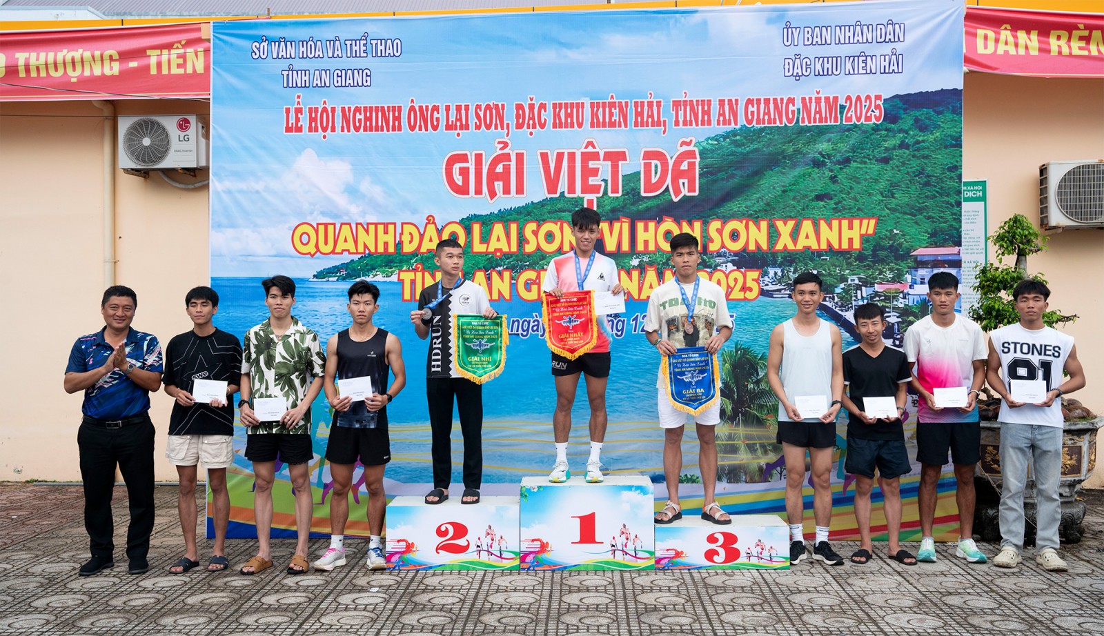 Giải việt dã quanh đảo Lại Sơn “Vì Hòn Sơn xanh” tỉnh An Giang năm 2025 thu hút gần 300 vận động viên thuộc 21 đơn vị trong tỉnh tham gia tranh tài 4 nội dung: 5km nam nhóm 2 (18 tuổi trở lên); 3km nữ nhóm 2 (18 tuổi trở lên); 3km nam nhóm 1 (từ 12 - 17 tuổi); 2km nữ nhóm 1 (từ 12 - 17 tuổi).