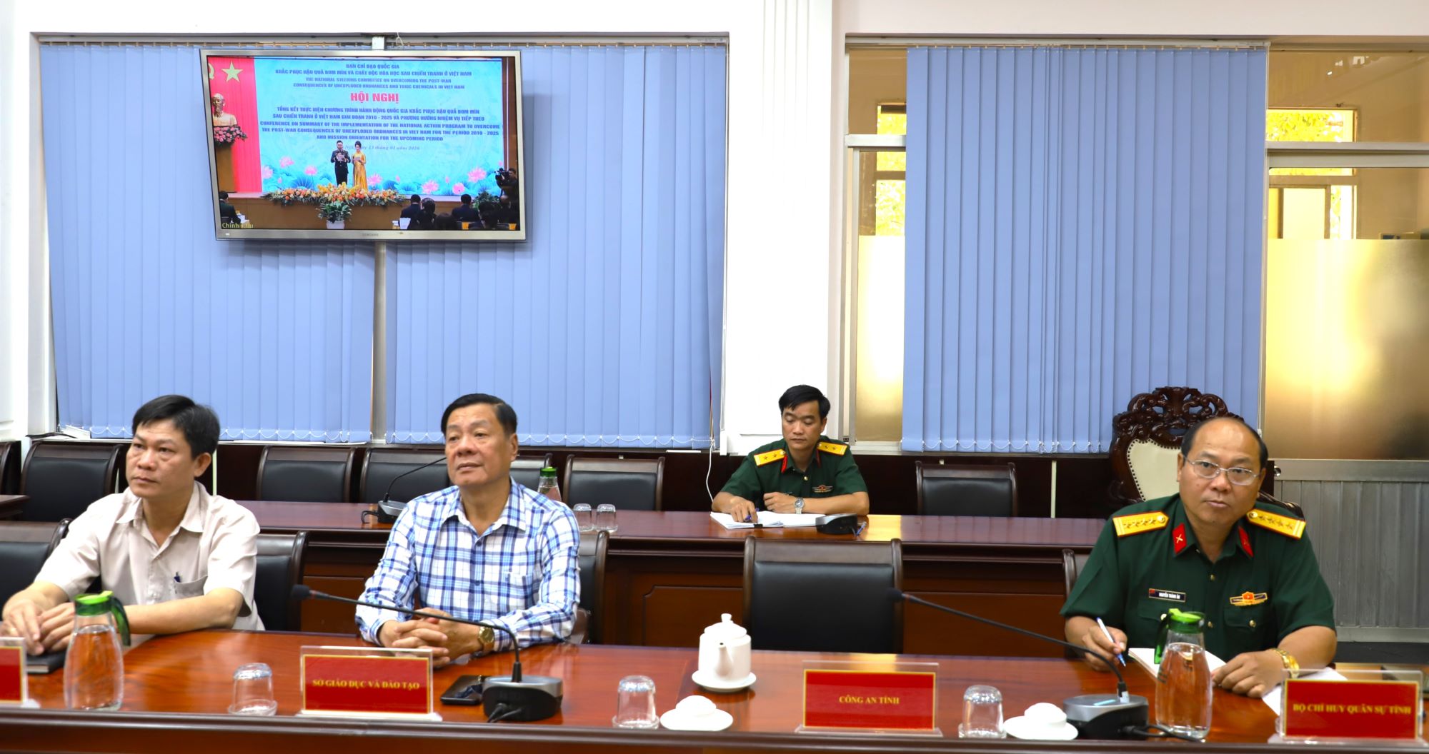 Chủ trì Hội nghị, có Ủy viên Bộ Chính trị, Thủ tướng Chính phủ, Trưởng Ban Chỉ đạo quốc gia khắc phục hậu quả bom mìn và chất độc hóa học sau chiến tranh ở Việt Nam Phạm Minh Chính; Đại tướng Phan Văn Giang - Ủy viên Bộ Chính trị, Bộ trưởng Bộ Quốc phòng, Phó Trưởng Ban Chỉ đạo; các bộ, ngành liên quan cùng tham dự.
