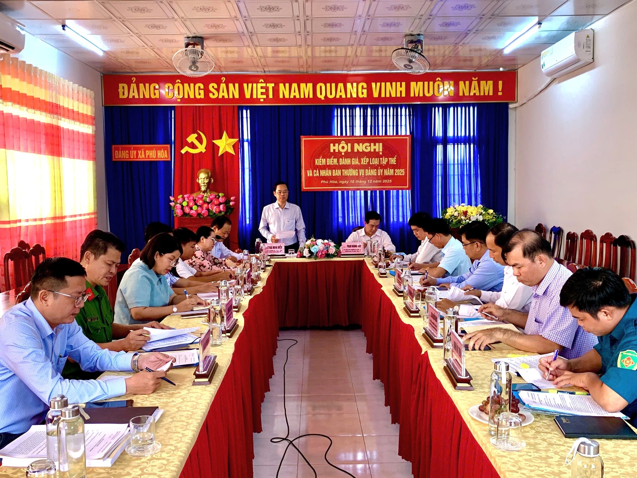 (Cổng TTĐT tỉnh AG)- Chiều ngày 16/12, Ban Thường vụ Đảng ủy xã Phú Hòa tổ chức Hội nghị kiểm điểm, đánh giá, xếp loại tập thể và cá nhân Ban Thường vụ Đảng ủy xã năm 2025.