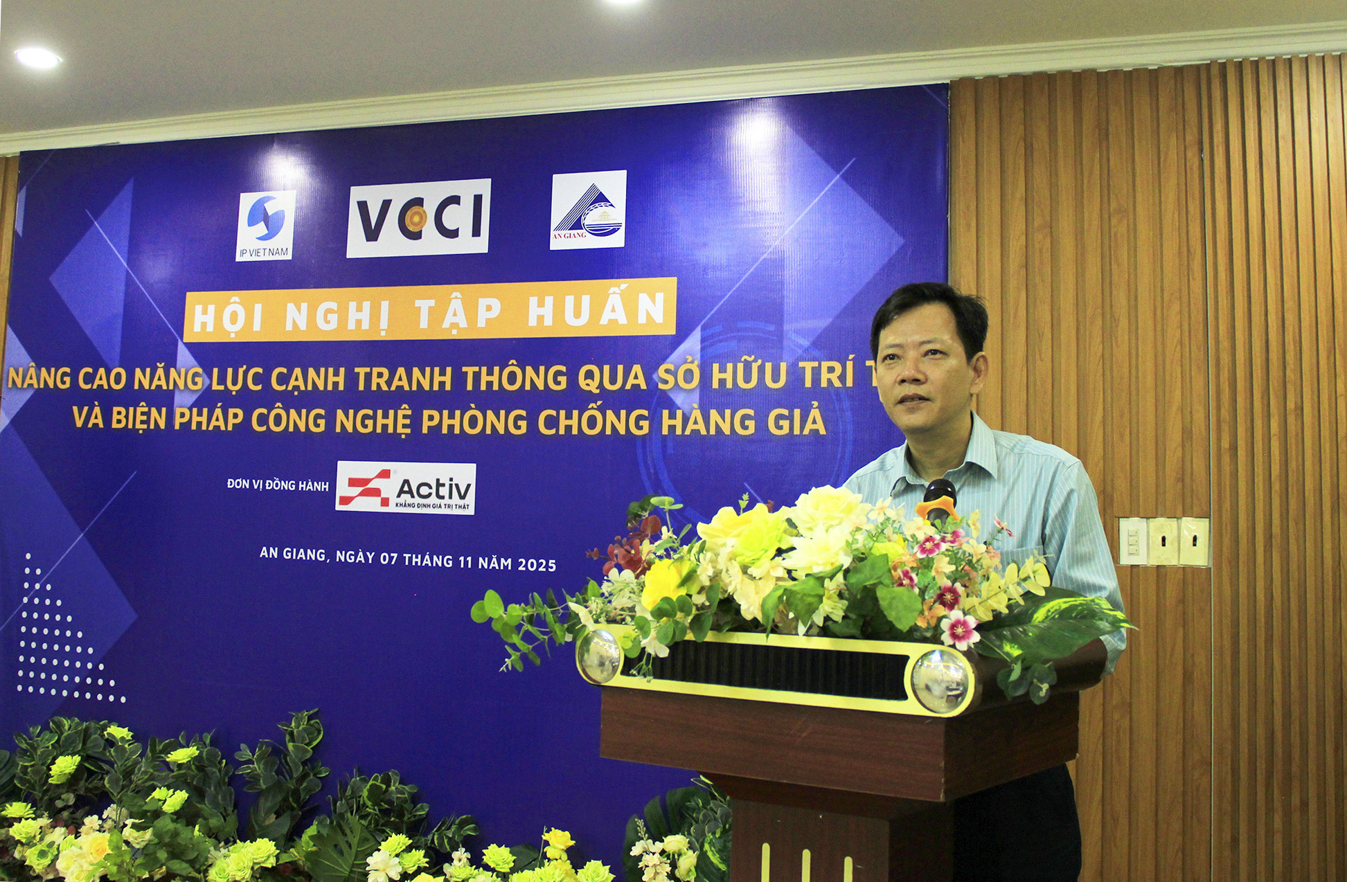(Cổng TTĐT tỉnh AG)-Sáng ngày 07/11, Sở Khoa học và Công nghệ tỉnh An Giang phối hợp Văn phòng đại diện Cục Sở hữu trí tuệ tại thành phố Hồ Chí Minh, Viện Phát triển Doanh nghiệp – Liên đoàn Thương mại và Công nghiệp Việt Nam (VCCI) tổ chức Hội nghị tập huấn “Nâng cao năng lực cạnh tranh thông qua Sở hữu trí tuệ và biện pháp công nghệ phòng chống hàng giả”.