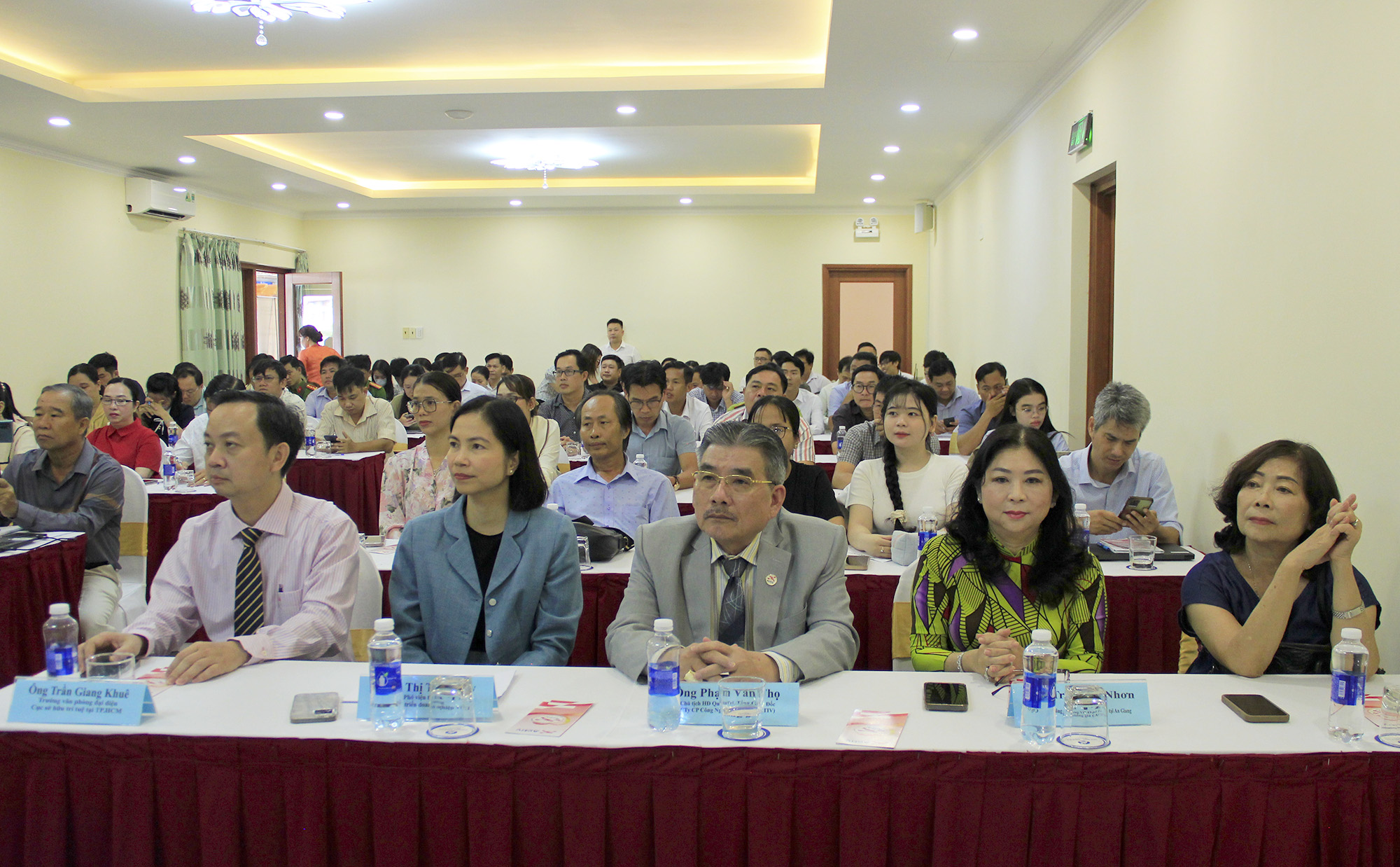 Tham dự hội nghị có Phó Giám đốc Sở Khoa học và Công nghệ Lê Quốc Cường; Phó Viện trưởng Viện phát triển doanh nghiệp VCCI Lê Thị Thu Thủy; Giám đốc Văn phòng đại diện Cục sở hữu trí tuệ tại thành phố Hồ Chí Minh Trần Giang Khuê; Chủ tịch Hội đồng Quản Trị, Tổng Giám Đốc Công ty cổ phần Công Nghệ chống giả Việt Nam (ACTIV) Phạm Văn Thọ; Phó Chủ tịch, Hiệp hội doanh nghiệp tỉnh Kiên Giang Nguyễn Văn Hạnh; cùng đại diện các cơ quan, đơn vị, các doanh nghiệp trên địa bàn tỉnh An Giang.