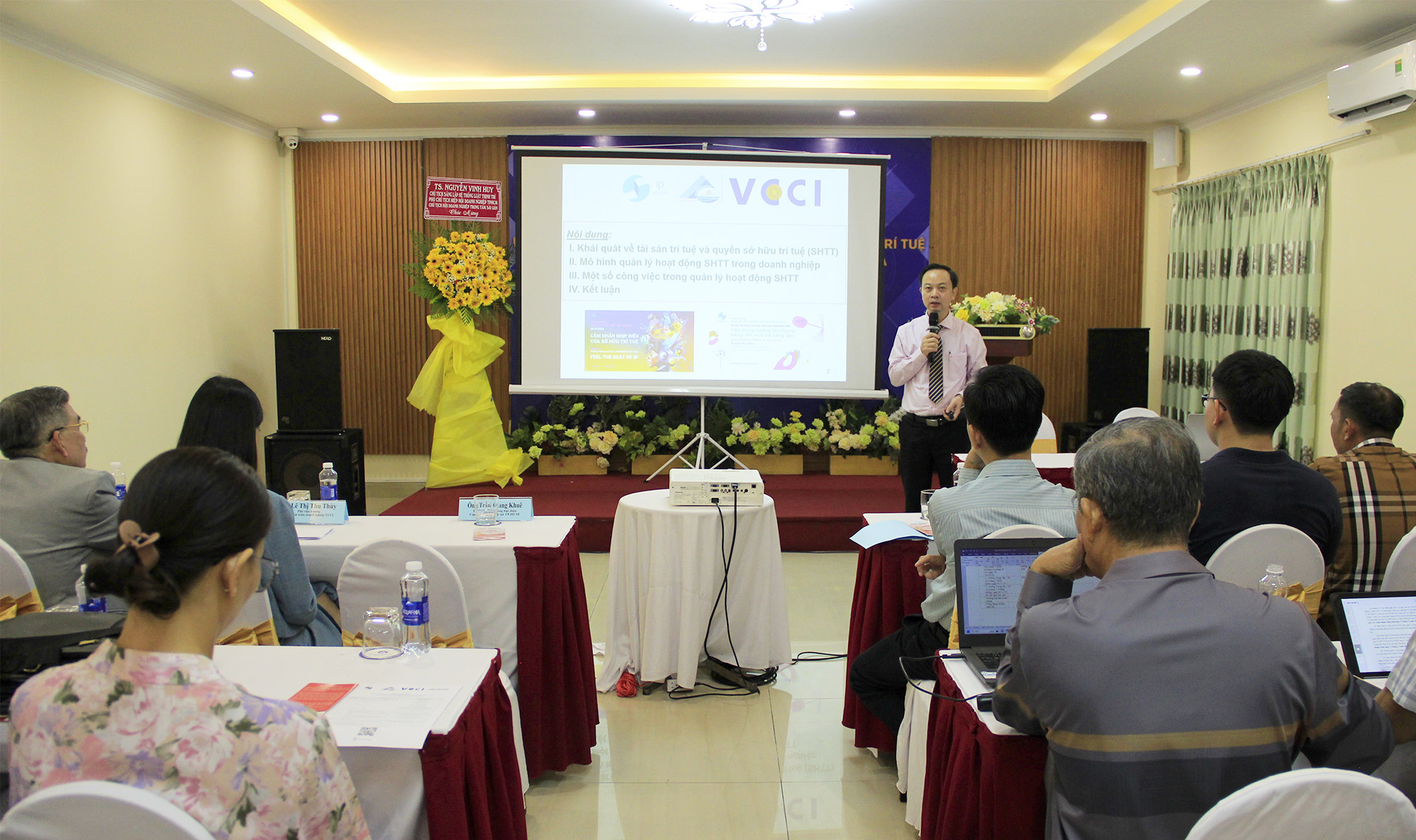 Tại hội nghị, Giám đốc Văn phòng đại diện Cục sở hữu trí tuệ tại thành phố Hồ Chí Minh Trần Giang Khuê, báo cáo chuyên đề “Quản trị và khai thác tài sản trí tuệ trong doanh nghiệp; đại diện Công ty cổ phần Công Nghệ chống hàng giả Việt Nam (ACTIV) Trần Hoàng Duy Phương, báo cáo chuyên đề “Giải pháp công nghệ phòng chống hàng giả, bảo vệ thương hiệu doanh nghiệp và người tiêu dùng’; đại diện Văn phòng đại diện Cục sở hữu trí tuệ tại thành phố Hồ Chí Minh Trần Ngọc Hiếu, báo cáo chuyên đề “Thủ tục đăng ký nhãn hiệu, kiểu dáng công nghiệp”.