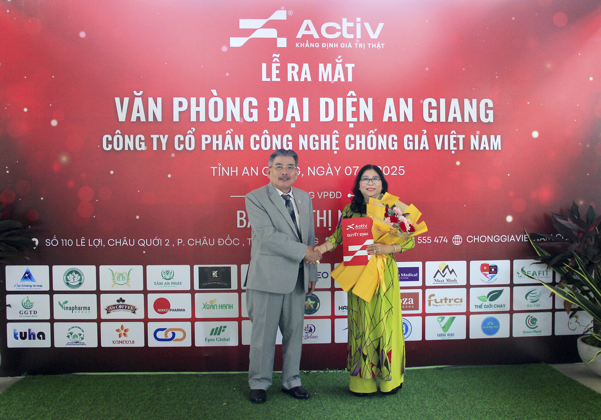 Dịp này, Chủ tịch Hội đồng Quản Trị, Tổng Giám Đốc Công ty cổ phần Công Nghệ chống giả Việt Nam (ACTIV) Phạm Văn Thọ trao Quyết định thành lập Văn phòng Đại diện tại An Giang cho Trưởng Văn phòng Đại diện Công ty Cổ phần Công nghệ Chống giả Việt Nam (ACTIV) tại An Giang Trần Thị Nhơn. Sự kiện này giúp nâng cao hiệu quả hoạt động, lan tỏa mạnh mẽ, đồng hành cùng doanh nghiệp và hợp tác xã, góp phần nâng cao giá trị thương hiệu cho các sản phẩm chủ lực của tỉnh An Giang trong thời gian tới.