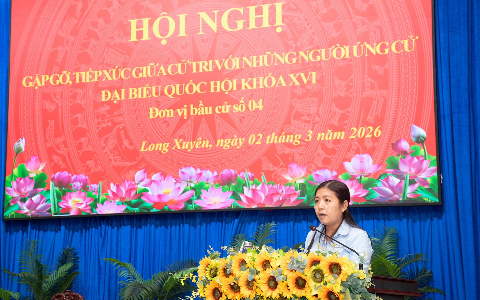 Thay mặt các ứng cử viên đại biểu Quốc hội Khóa XVI, Bí thư Trung ương Đảng, Phó Chủ tịch nước, Phó Chủ tịch Hội đồng bầu cử Quốc gia Võ Thị Ánh Xuân trân trọng cảm ơn cử tri về các ý kiến đóng góp chân thành, thiết thực, thể hiện sự quan tâm đến quá trình phát triển của tỉnh An Giang và đất nước. Qua đó, mong muốn cử tri và Nhân dân tiếp tục đồng hành cùng Đảng bộ, chính quyền tỉnh An Giang xây dựng quê hương ngày càng giàu đẹp, văn minh, hiện đại.