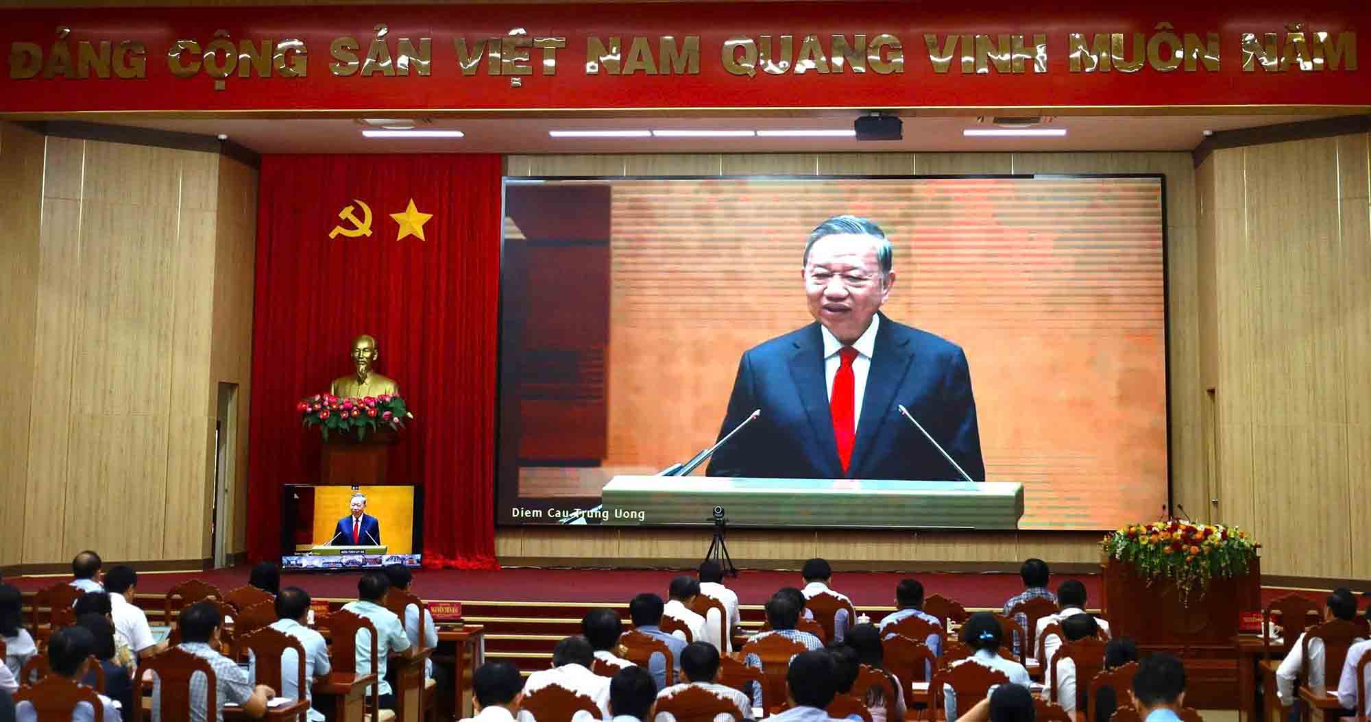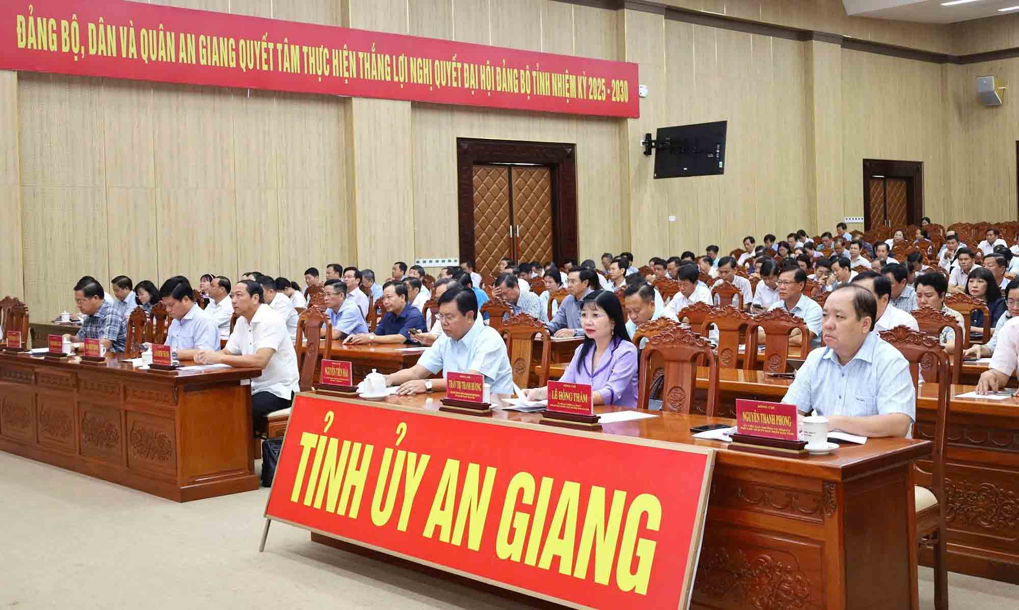Chủ trì tại điểm cầu Tỉnh ủy An Giang có Ủy viên Ban Chấp hành Trung ương Đảng, Bí thư Tỉnh ủy An Giang Nguyễn Tiến Hải; Phó Bí thư Tỉnh ủy, Trưởng Đoàn đại biểu Quốc hội tỉnh, Chủ tịch Ủy ban Mặt trận Tổ quốc Việt Nam tỉnh Trần Thị Thanh Hương, Phó Bí thư Tỉnh ủy Lâm Minh Thành cùng các đồng chí Ủy viên Ban Thường vụ, Ủy viên Ban Chấp hành Đảng bộ tỉnh; các đồng chí nguyên là lãnh đạo tỉnh và hơn 14.000 đại biểu tại 115 điểm cầu các xã, phường, đặc khu và các đảng ủy trực thuộc Tỉnh ủy.