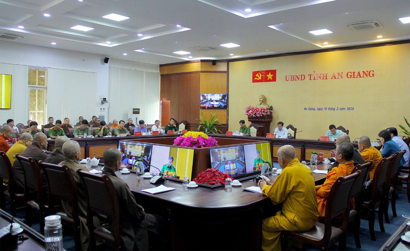 Tại điểm cầu tỉnh An Giang do Phó Chủ tịch Ủy ban nhân dân tỉnh Ngô Công Thức chủ trì Hội nghị; cùng tham dự có đại diện lãnh đạo các sở, ban, ngành tỉnh; Công an tỉnh; đại diện lãnh đạo Sở Nông nghiệp và Môi trường và các đơn vị chức năng trực thuộc và đại diện Ban Trị sự, cơ sở tự viện (thuộc Giáo hội Phật giáo Việt Nam).