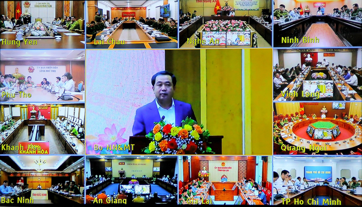 Chủ trì Hội nghị tại điểm cầu trụ sở Bộ Nông nghiệp và Môi trường có Ủy viên Bộ Chính trị, Bộ trưởng Bộ Nông nghiệp và Môi trường Trần Đức Thắng; Ủy viên Ban Chấp hành Trung ương Đảng, Thứ trưởng Thường trực Bộ Nông nghiệp và Môi trường Trịnh Việt Hùng; Ủy viên Ban Chấp hành Trung ương Đảng, Thứ trưởng Bộ Công an, Thượng tướng Nguyễn Văn Long.