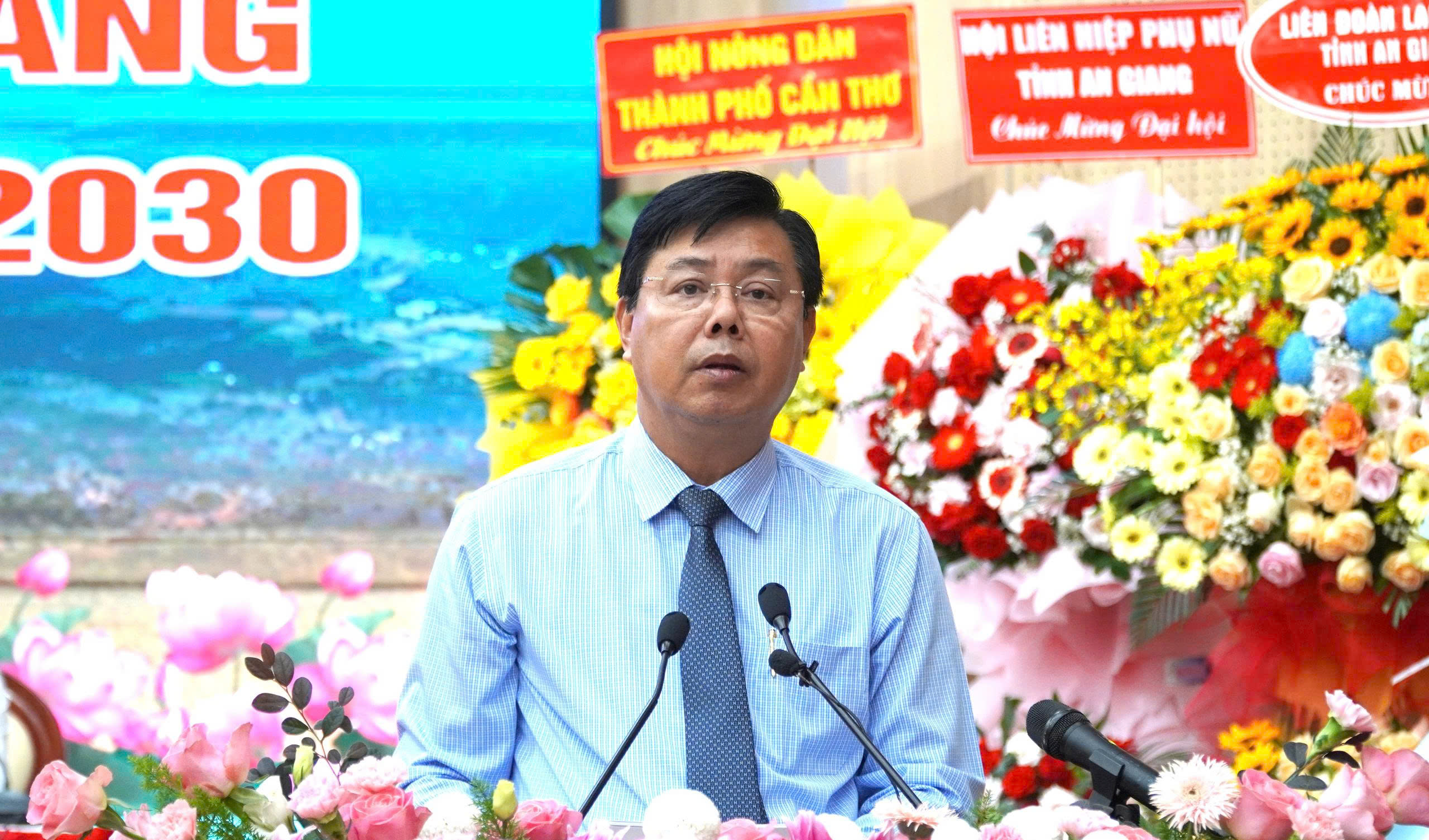 Phát biểu chỉ đạo Đại hội, Chủ tịch Trung ương Hội Nông dân Việt Nam Lương Quốc Đoàn ghi nhận, biểu dương những kết quả nổi bật trong công tác Hội và phong trào nông dân tỉnh An Giang nhiệm kỳ qua. Đồng thời chỉ ra những khó khăn, hạn chế, như đời sống một bộ phận nông dân, nhất là vùng sâu, vùng biên giới còn khó khăn; chất lượng nguồn nhân lực nông thôn chưa đáp ứng yêu cầu nông nghiệp hiện đại; sản xuất còn nhỏ lẻ, liên kết chuỗi giá trị thiếu chặt chẽ; việc ứng dụng khoa học công nghệ, chuyển đổi số còn hạn chế; tình trạng “được mùa – mất giá” vẫn còn diễn ra, vấn đề an toàn thực phẩm và môi trường vẫn là thách thức.