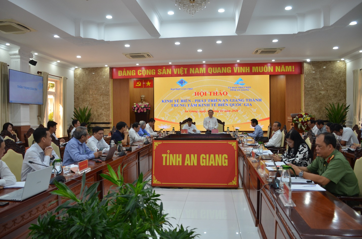 (Cổng TTĐT tỉnh AG)- Sáng 30/01, UBND tỉnh An Giang phối hợp Đại học Cần Thơ tổ chức Hội thảo Kinh tế biển – Phát triển An Giang thành trung tâm kinh tế biển quốc gia. Đại diện các sở, ban, ngành tỉnh, các địa phương, nhà khoa học, chuyên gia và doanh nghiệp tham dự Hội thảo.