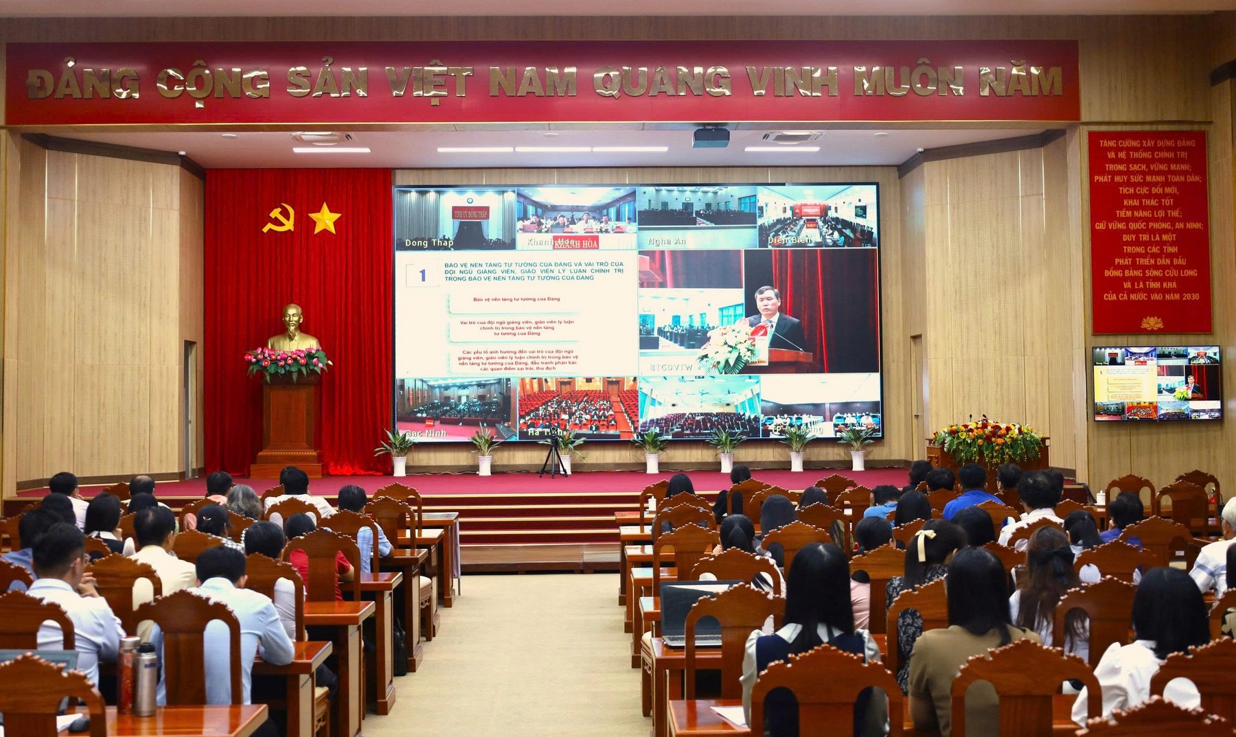(Cổng TTĐT tỉnh AG)- Ngày 30/10, Ban Tuyên giáo và Dân vận Tỉnh ủy An Giang tổ chức trực tuyến Khóa bồi dưỡng kiến thức lý luận chính trị năm 2025 dành cho giảng viên, giáo viên giảng dạy lý luận chính trị; cán bộ làm công tác học sinh, sinh viên; Ban Chấp hành Đoàn Thanh niên Cộng sản Hồ Chí Minh tại các trường đại học, cao đẳng, trung cấp trong hệ thống giáo dục quốc dân trên địa bàn tỉnh.