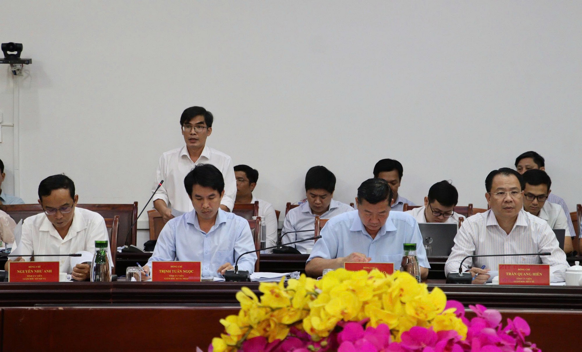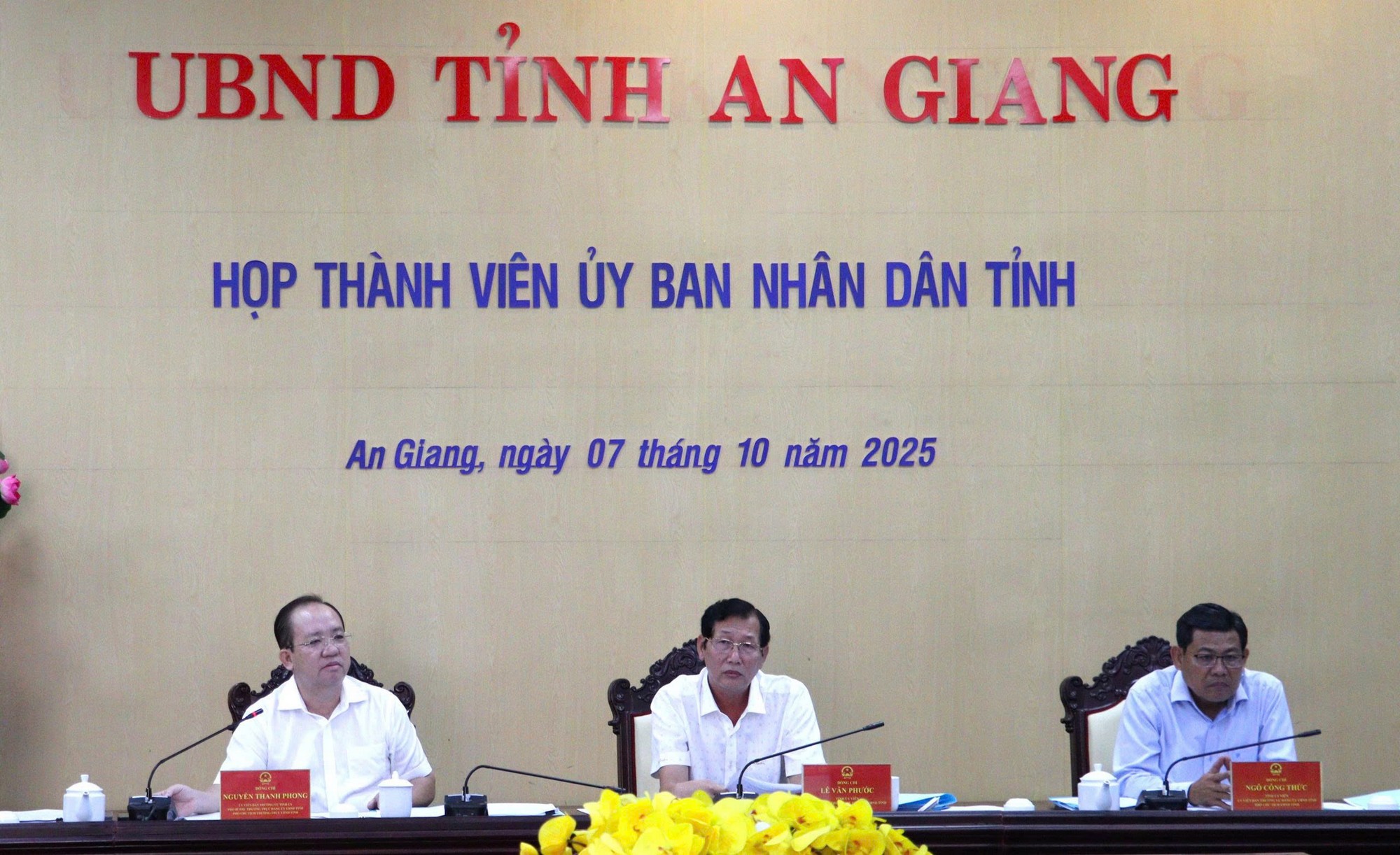 (Cổng TTĐT tỉnh AG)- Chiều 07/10, Ủy viên Ban Thường vụ Tỉnh ủy, Phó Chủ tịch Thường trực UBND tỉnh Nguyễn Thanh Phong chủ trì cuộc họp chuyên đề thông qua thành viên UBND tỉnh về các nội dung thuộc thẩm quyền quyết định của UBND tỉnh và thông qua Ban Thường vụ Đảng ủy UBND tỉnh. Cùng tham dự có Tỉnh ủy viên, Phó Chủ tịch UBND tỉnh Lê Văn Phước, Ngô Công Thức.