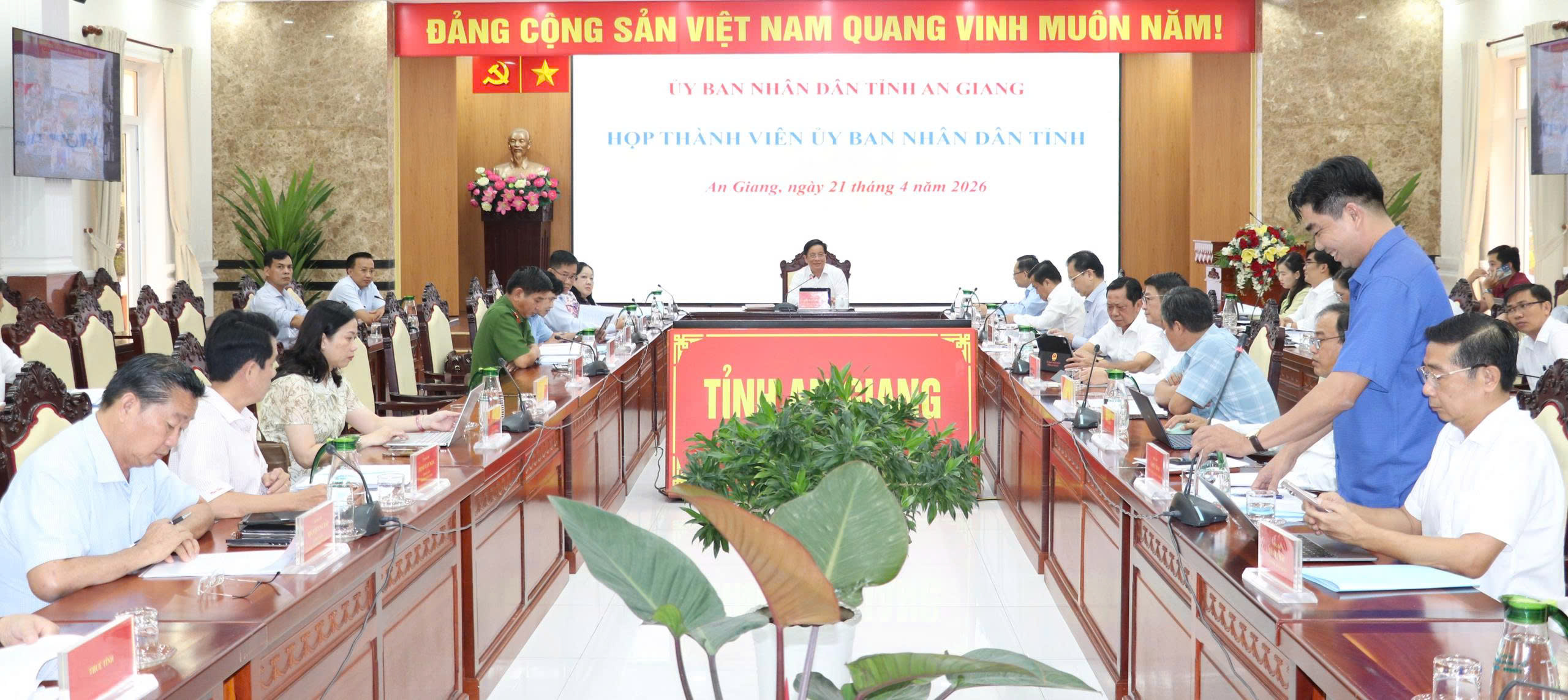 (Cổng TTĐT tỉnh AG) – Chiều 21/4, UBND tỉnh tổ chức họp để thông qua Thành viên UBND tỉnh về các nội dung thuộc thẩm quyền quyết định và trình Ban Thường vụ Đảng ủy UBND tỉnh. Cuộc họp do Ủy viên Ban Chấp hành Trung ương Đảng, Phó Bí thư Tỉnh ủy, Chủ tịch UBND tỉnh Hồ Văn Mừng chủ trì.