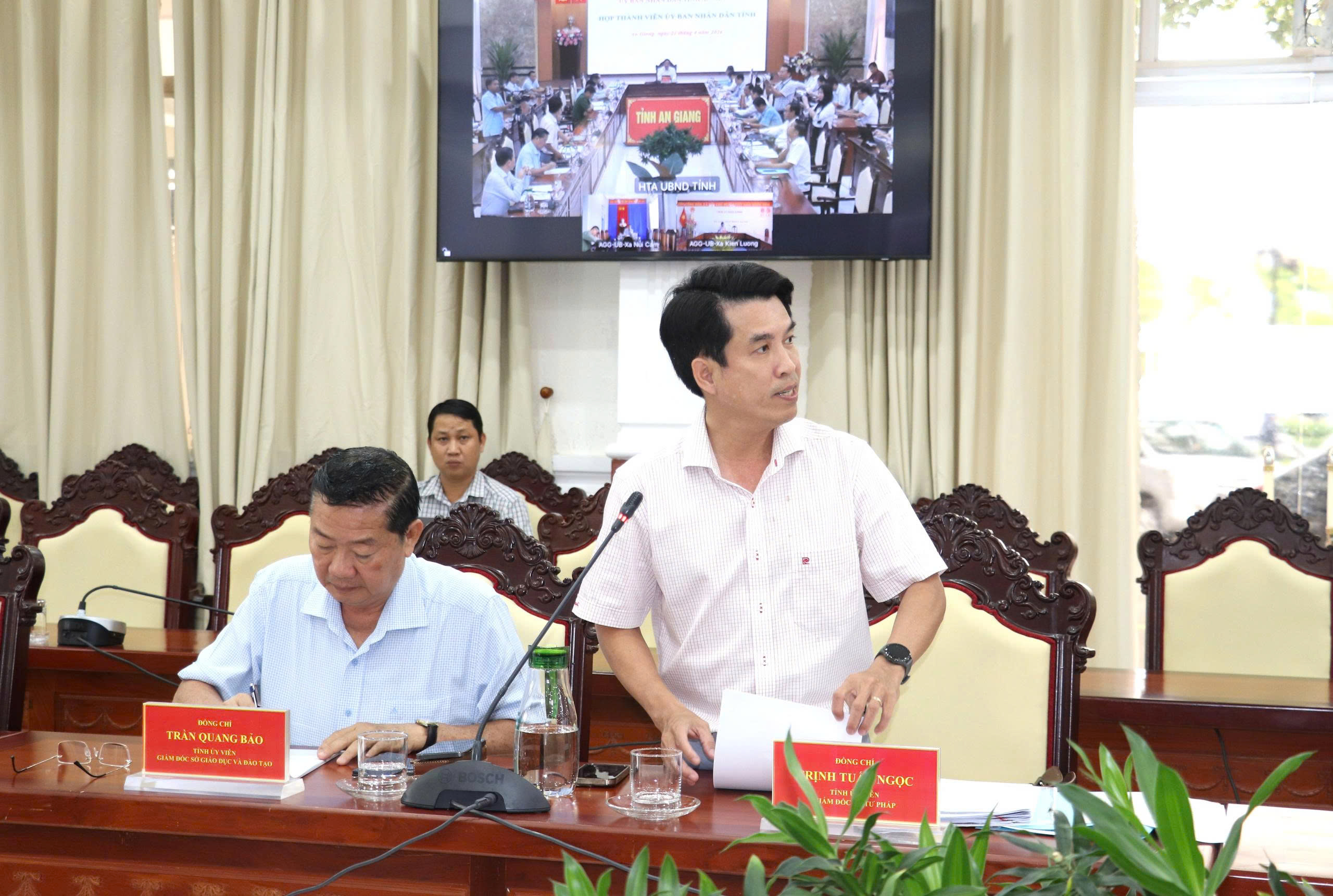 Sở Khoa học và Công nghệ tham mưu trình nội dung phê duyệt chủ trương và dự kiến kinh phí mua sắm “Trang bị máy tính để bàn và các thiết bị xử lý văn bản trên Hệ thống Quản lý văn bản và hồ sơ công việc chứa nội dung bí mật nhà nước của UBND cấp tỉnh và cấp xã”; Phê duyệt chủ trương và dự kiến kinh phí mua sắm “Dự án xây dựng, Nâng cấp Trung tâm dữ liệu tỉnh đáp ứng mô hình điện toán đám mây, tích hợp, chia sẻ dữ liệu với Trung tâm dữ liệu quốc gia”.