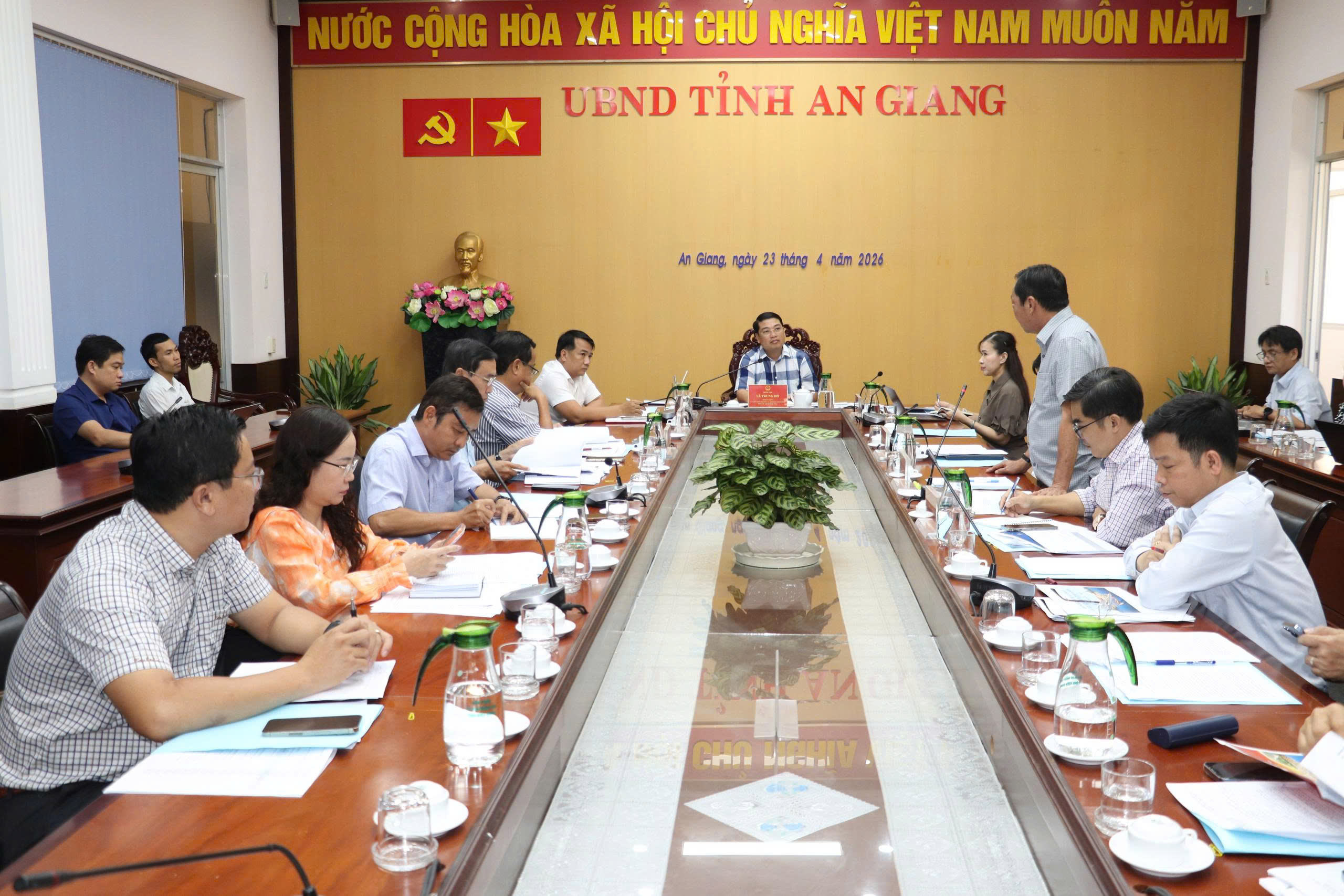 (Cổng TTĐT tỉnh AG) - Ngày 23/4, Phó Chủ tịch UBND tỉnh Lê Trung Hồ chủ trì họp Tiểu ban Nội dung phục vụ Hội nghị công bố Quy hoạch và Xúc tiến đầu tư tỉnh An Giang.