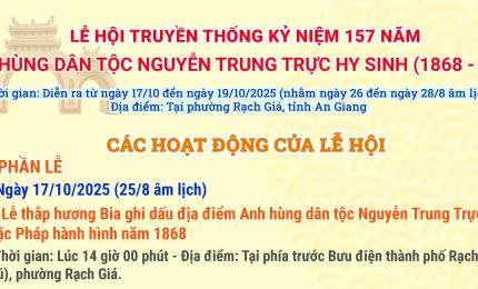 Lễ hội truyền thống kỷ niệm 157 năm Anh hùng dân tộc Nguyễn Trung Trực hy sinh (1868-2025)