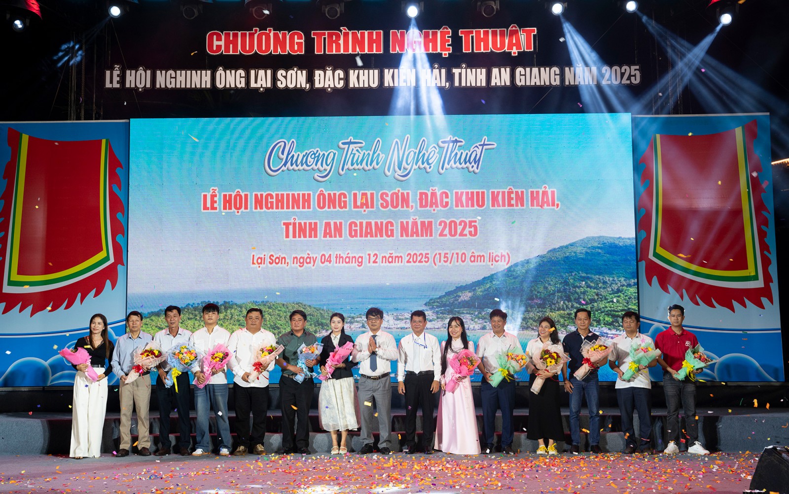 (Cổng TTĐT tỉnh AG)- Tối 04/12, tại Lăng thần Nam Hải Lại Sơn, Sở Văn hóa và Thể thao tỉnh An Giang phối hợp UBND đặc khu Kiên Hải tổ chức chương trình nghệ thuật khai mạc lễ hội Nghinh Ông Lại Sơn năm 2025.