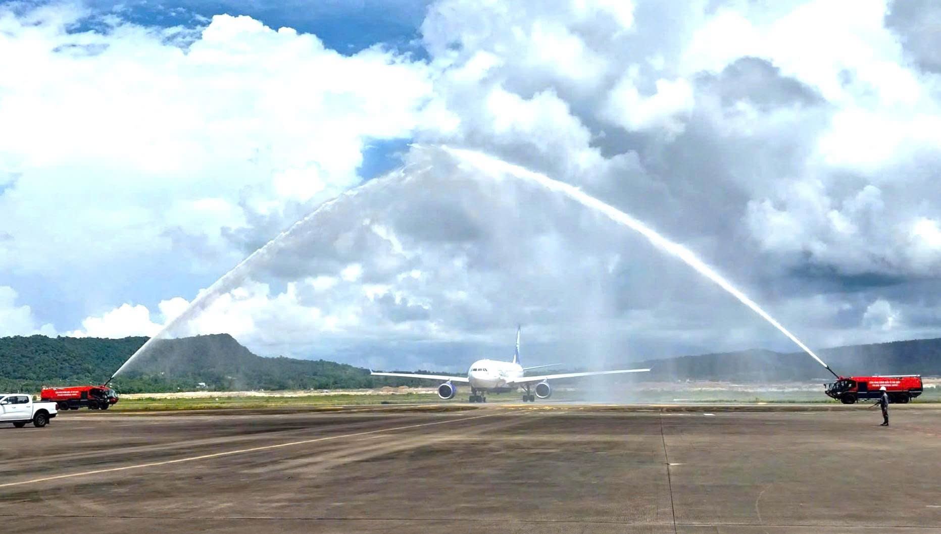 (Cổng TTĐT tỉnh AG)- Sáng 12/10, chuyến bay mang số hiệu BRU 8197 của Hãng hàng không quốc gia Belavia (Belarusian Airlines) đã hạ cánh tại Cảng hàng không Quốc tế Phú Quốc. Đây là chuyến bay thẳng đầu tiên kết nối thủ đô Minsk (Belarus) với đặc khu Phú Quốc (An Giang).