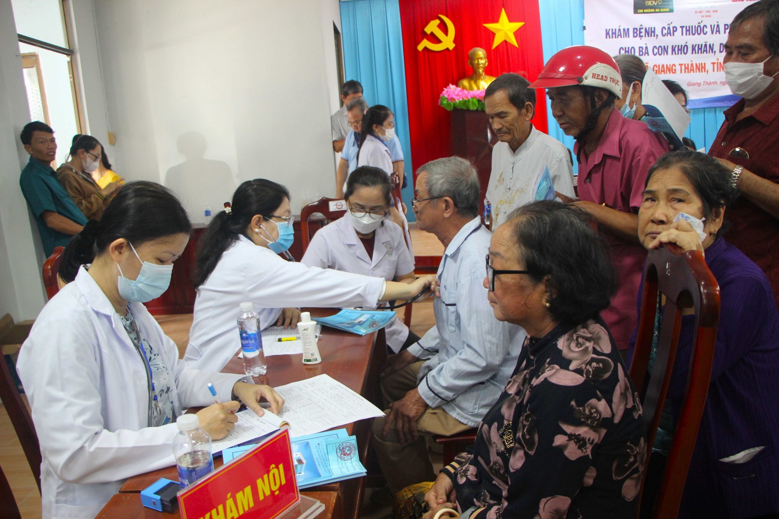 (Cổng TTĐT tỉnh AG)- Ngày 4/10, Bệnh viện Mắt - Tai Mũi Họng - Răng Hàm Mặt An Giang tổ chức khám bệnh, cấp thuốc miễn phí và tặng quà cho trên 400 người dân xã Giang Thành.