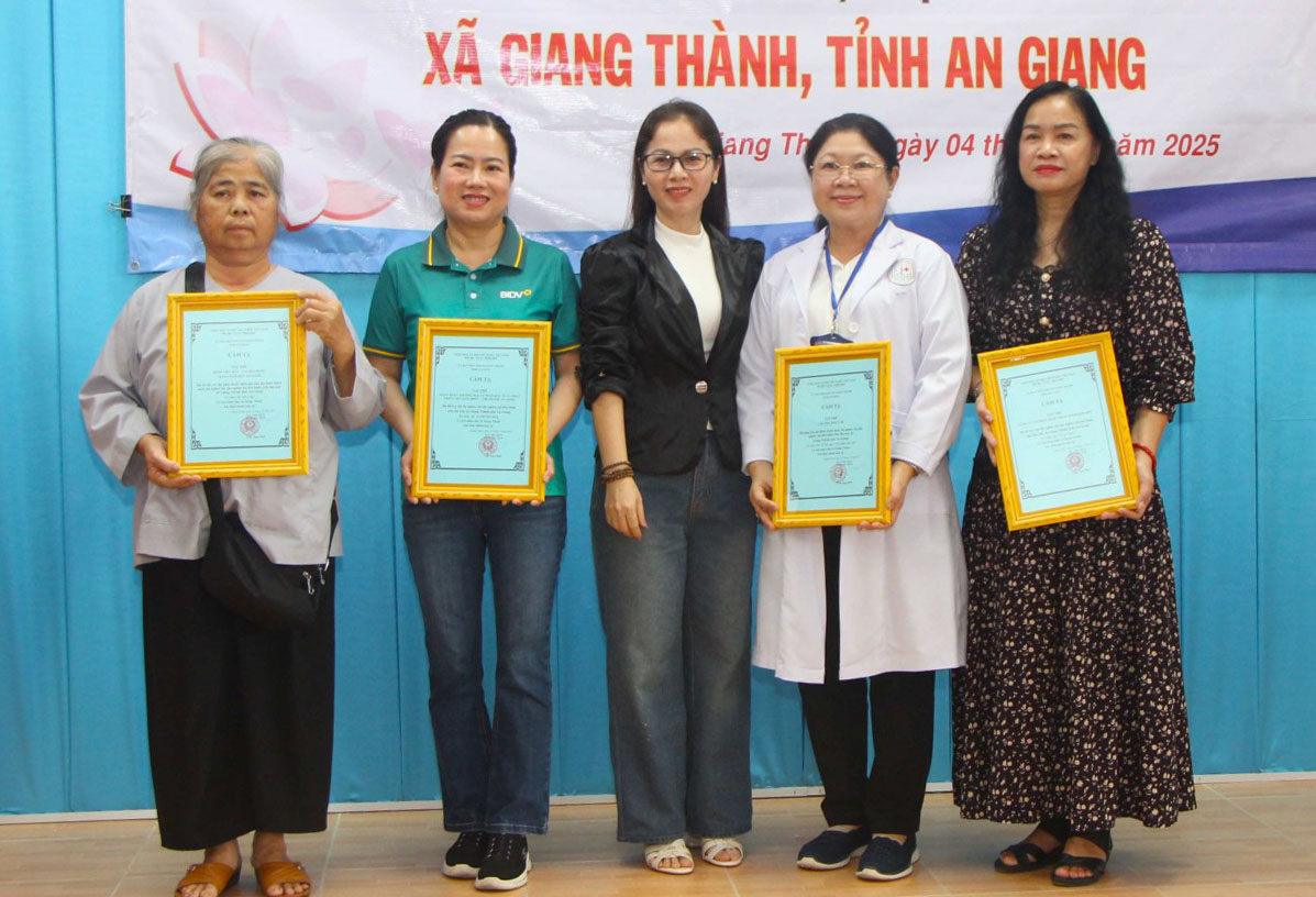 Bên cạnh đó, người dân thuộc diện chính sách và có hoàn cảnh khó khăn còn được trao tặng 1 suất quà gồm gạo, tập viết học sinh và tiền mặt. Tổng kinh phí tiền thuốc và quà gần 150 triệu đồng, trong đó cán bộ, nhân viên Bệnh viện Mắt - Tai Mũi Họng - Răng Hàm Mặt An Giang và một số nhà hảo tâm đóng góp 40 triệu đồng; Ngân hàng BIDV Chi nhánh An Giang hỗ trợ tiền mặt 50 triệu đồng; nhà hảo tâm đóng góp gạo và tập viết khoảng 60 triệu đồng.