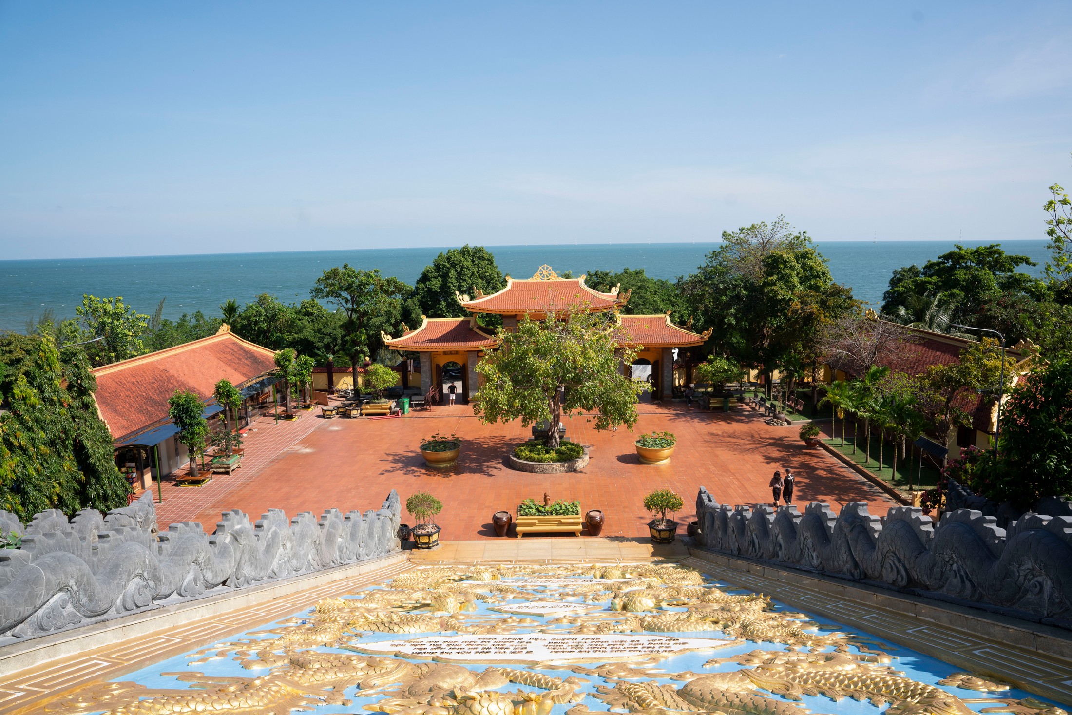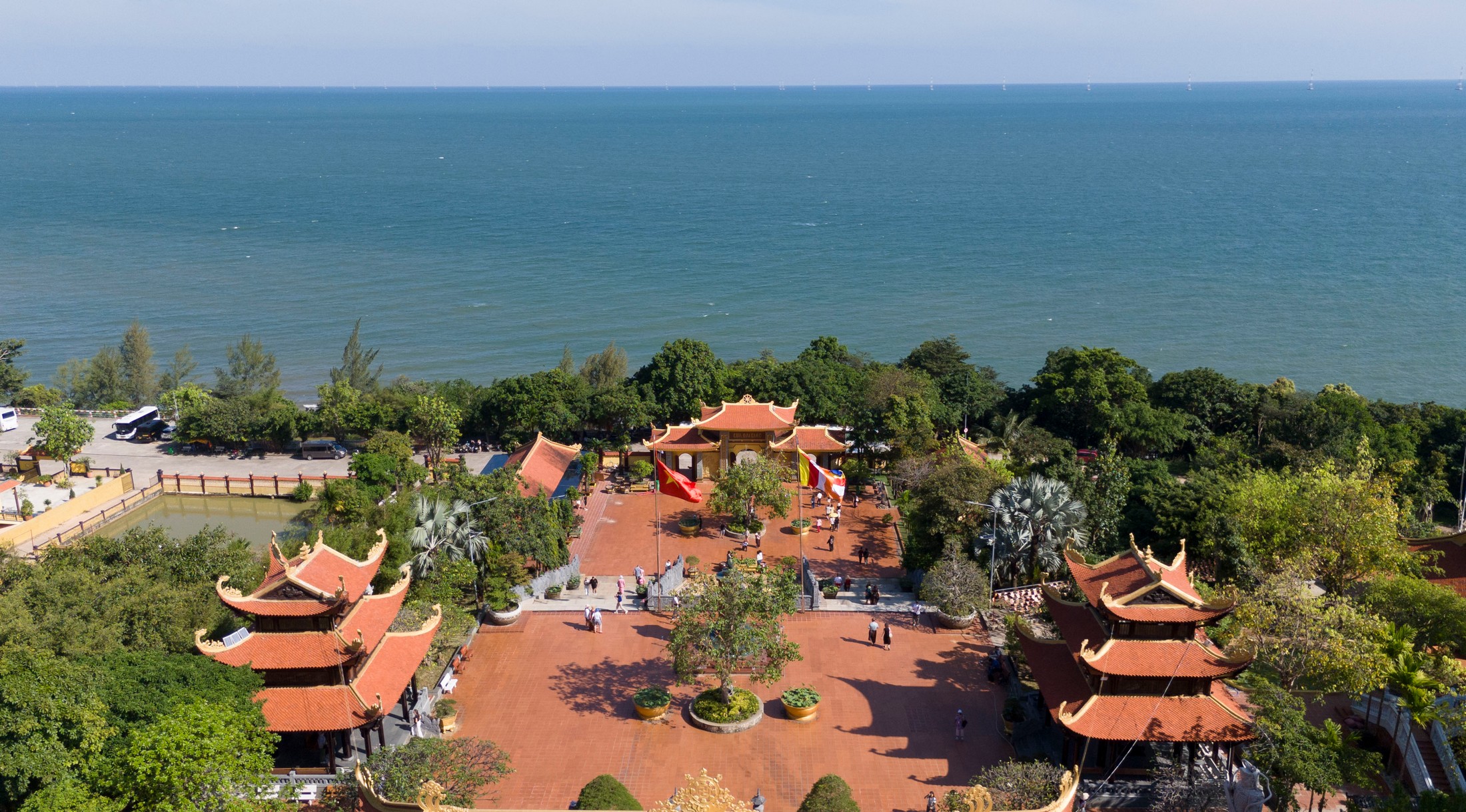 Chùa Hộ Quốc từ trên cao nhìn xuống view biển rất đẹp