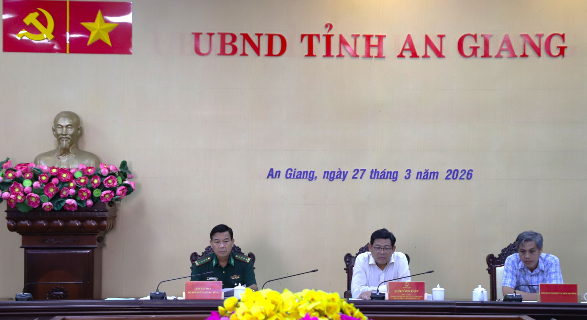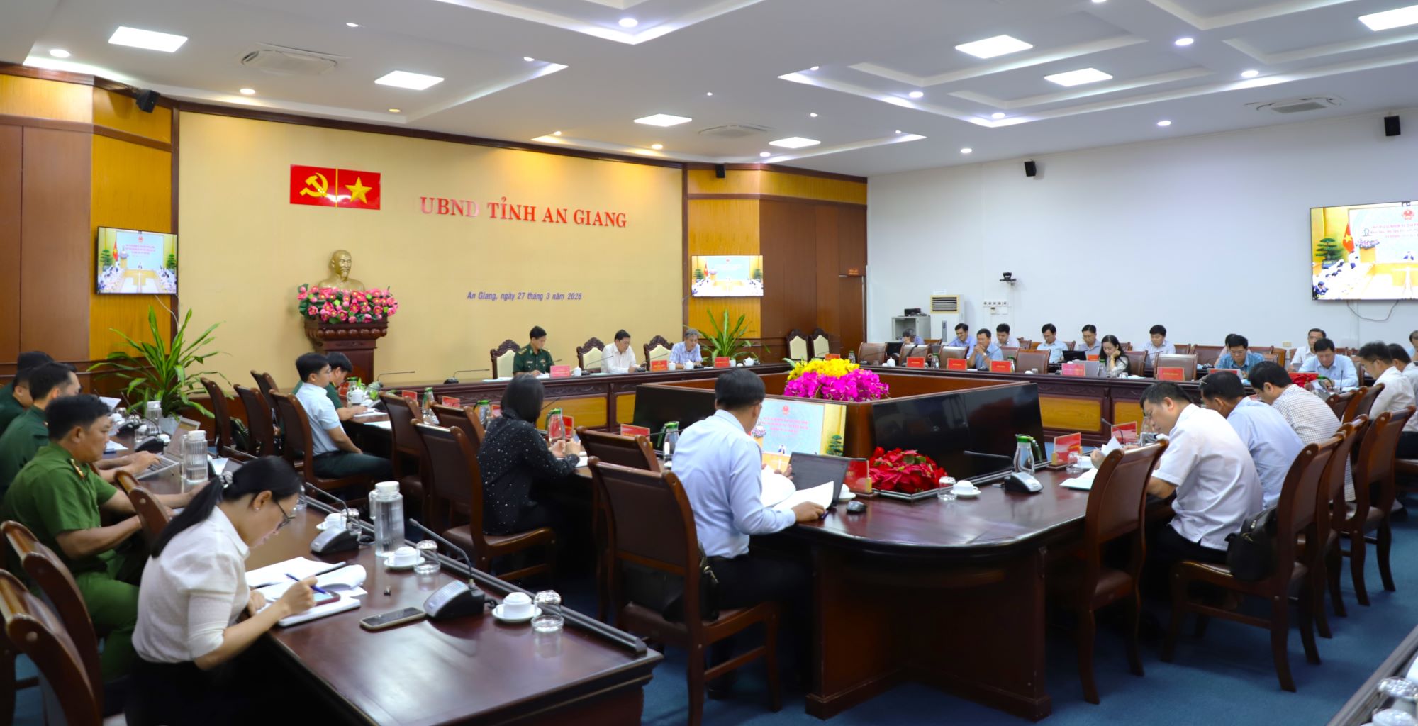 Tại điểm cầu tỉnh An Giang, có Tỉnh ủy viên, Phó Chủ tịch UBND tỉnh An Giang Ngô Công Thức chủ trì; đại diện Lãnh đạo các sở, ban, ngành, đoàn thể liên quan cùng tham dự; trực tuyến với các xã, phường, đặc khu ven biển.