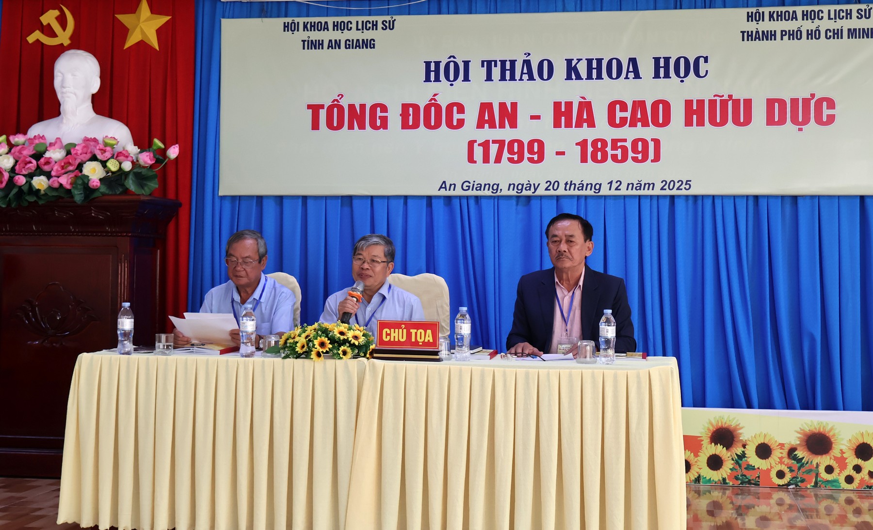 (Cổng TTĐT tỉnh AG)- Ngày 20/12, tại phường Long Xuyên, Hội Khoa học lịch sử tỉnh An Giang phối hợp Hội Khoa học lịch sử TP. Hồ Chí Minh tổ chức hội thảo khoa học chủ đề “Tổng đốc An - Hà Cao Hữu Dực (1799 - 1859)".