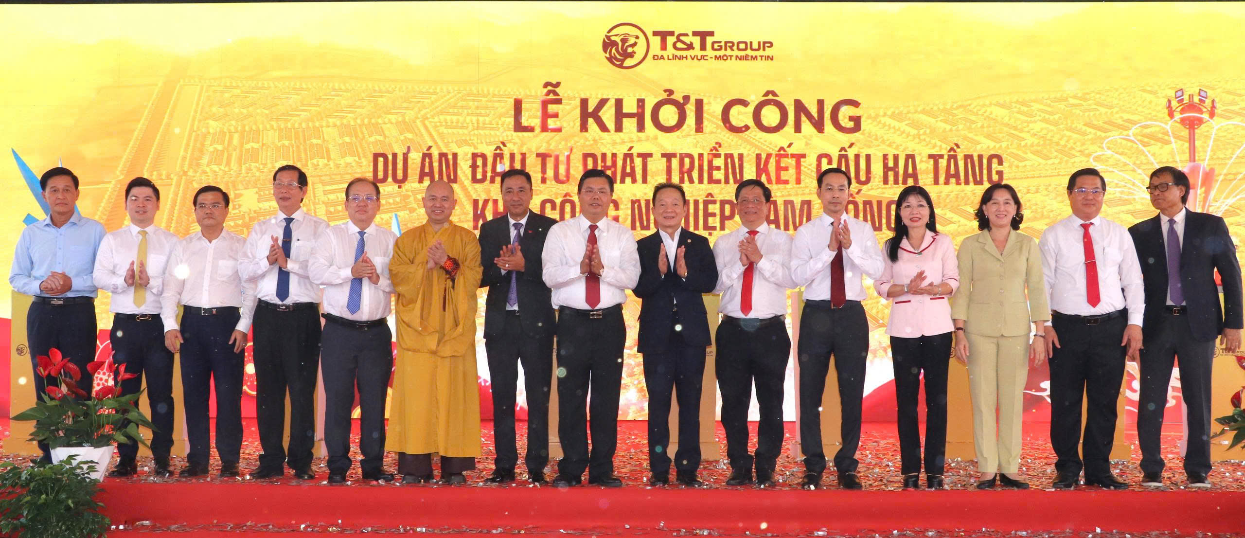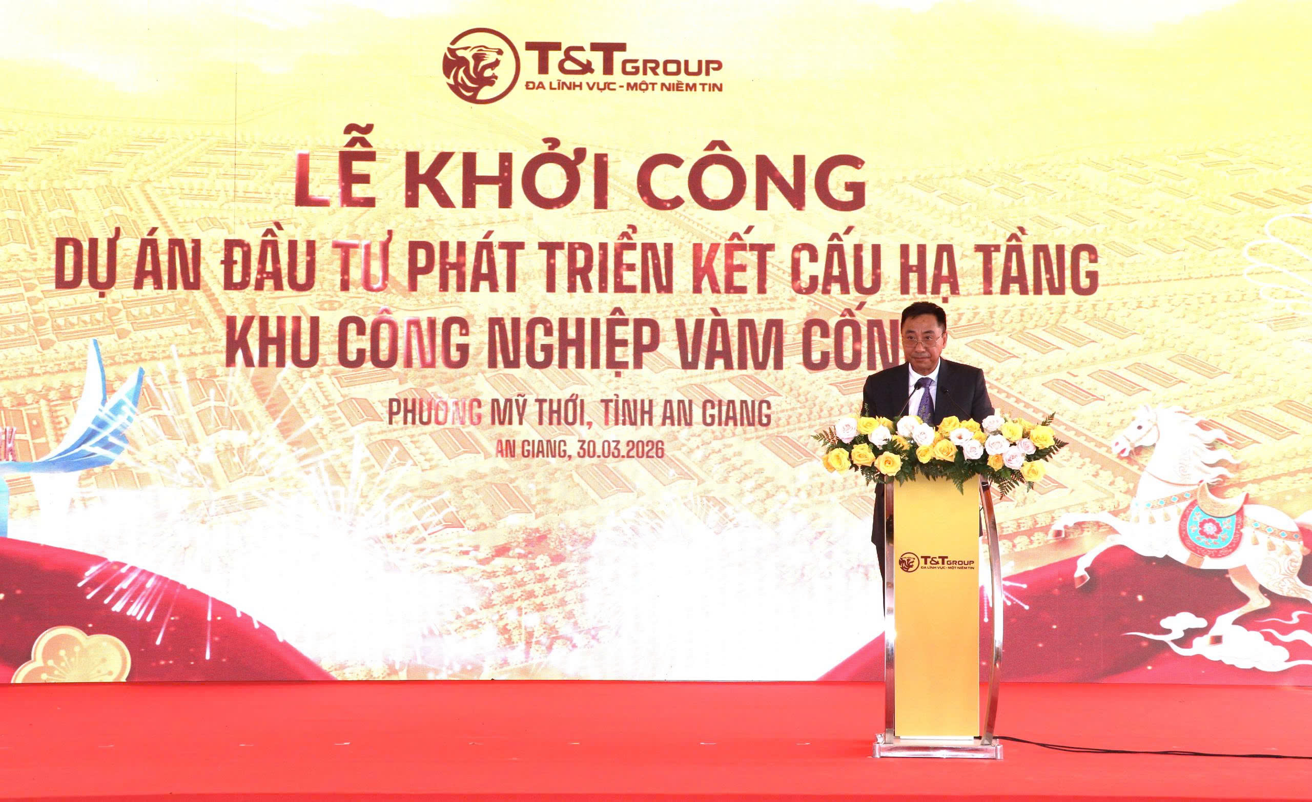 (Cổng TTĐT tỉnh AG) - Ngày 30/3, tại phường Mỹ Thới, tỉnh An Giang, Tập đoàn T&T Group tổ chức Lễ khởi công Dự án đầu tư phát triển kết cấu hạ tầng Khu công nghiệp Vàm Cống quy mô gần 200ha; đánh dấu bước khởi đầu cho việc hình thành một khu công nghiệp thế hệ mới theo định hướng xanh, hiện đại, đa chức năng và bền vững tại khu vực Đồng bằng sông Cửu Long.