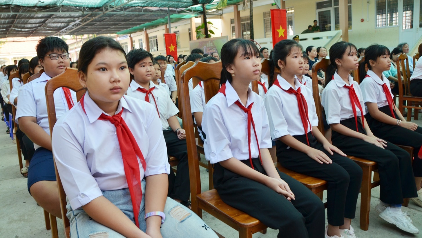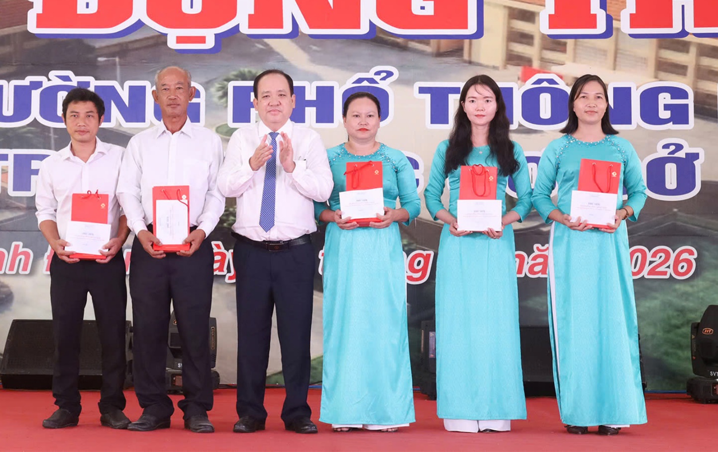 Dịp này, Tỉnh ủy, HĐND, UBND, Ủy ban MTTQ tỉnh An Giang tặng quà 5 giáo viên và 15 học sinh trên địa bàn xã Vĩnh Điều..
