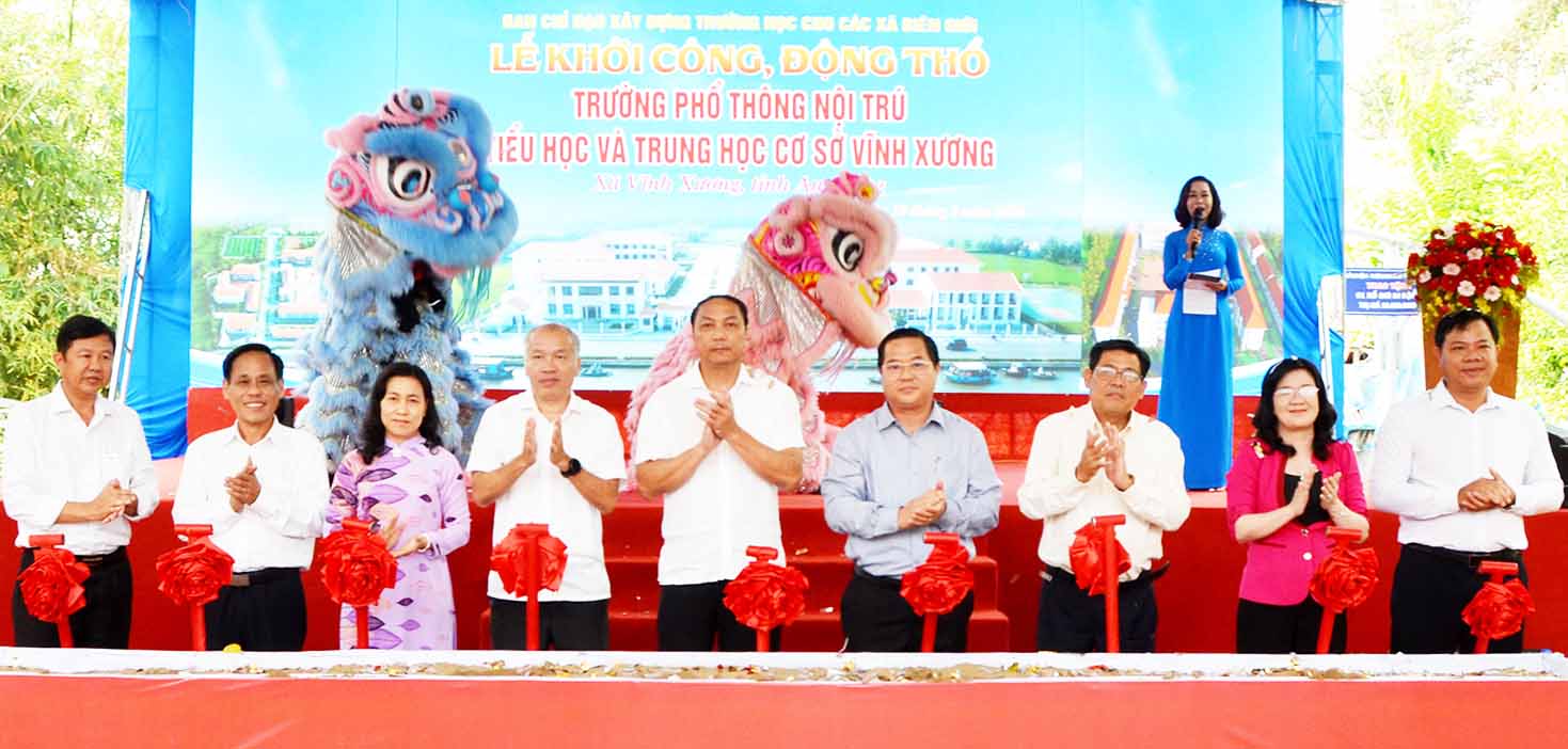 Dự lễ khởi công Trường Phổ thông Nội trú Tiểu học và THCS Vĩnh Xương có Phó Bí thư Tỉnh ủy An Giang Lâm Minh Thành; Ủy viên Ban Thường vụ Tỉnh ủy, Chủ nhiệm Ủy ban Kiểm tra Tỉnh ủy An Giang Huỳnh Quốc Thái; Ủy viên Ban Thường vụ Tỉnh ủy, Phó Bí thư Thường trực Đảng ủy Các cơ quan Đảng tỉnh An Giang Võ Nguyên Nam; Phó Chủ tịch UBND tỉnh An Giang Ngô Công Thức; các đồng chí Thường trực HĐND tỉnh, Ủy ban MTTQ Việt Nam tỉnh; các sở, ban, ngành, xã Vĩnh Xương, cùng đông đảo người dân, giáo viên và học sinh.
