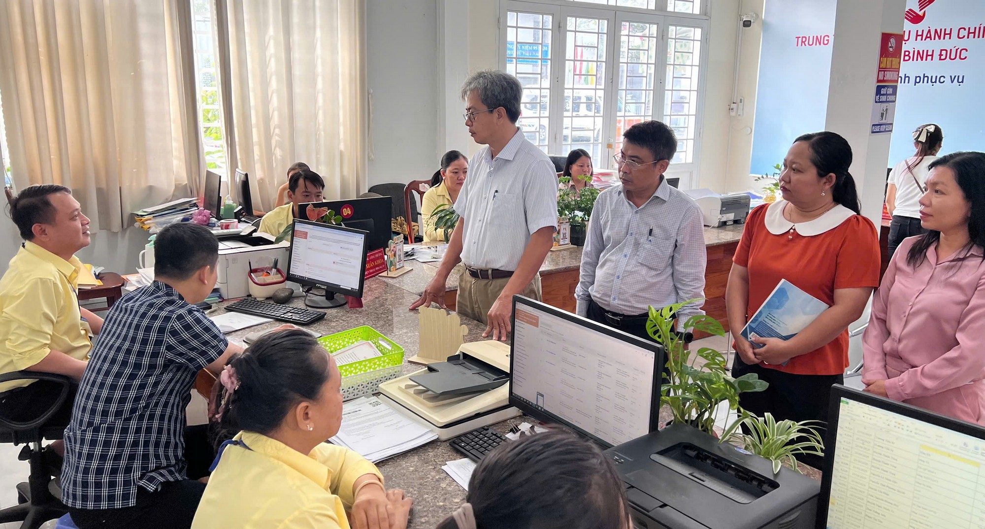 (Cổng TTĐT tỉnh AG)- Ngày 24/10, Đoàn kiểm tra công tác cải cách hành chính năm 2025 của tỉnh An Giang do Phó Giám đốc Sở Khoa học và Công nghệ Nguyễn Thanh Hải làm trưởng đoàn đã có buổi khảo sát và làm việc với UBND các phường: Long Xuyên, Bình Đức, Mỹ Thới và xã Mỹ Hòa Hưng về kết quả thực hiện công tác cải cách hành chính tại các địa phương qua hơn 3 tháng vận hành mô hình chính quyền địa phương 2 cấp.