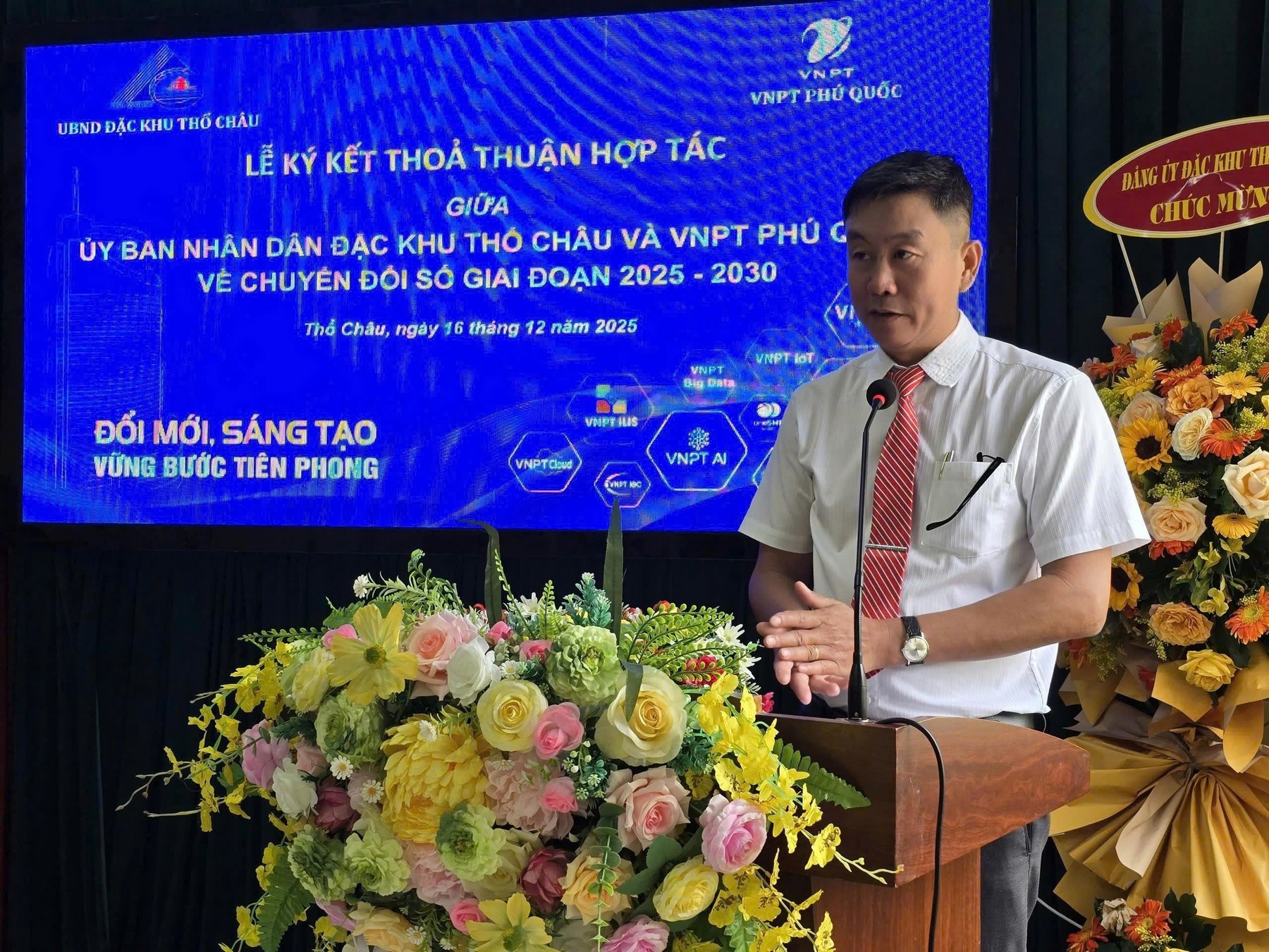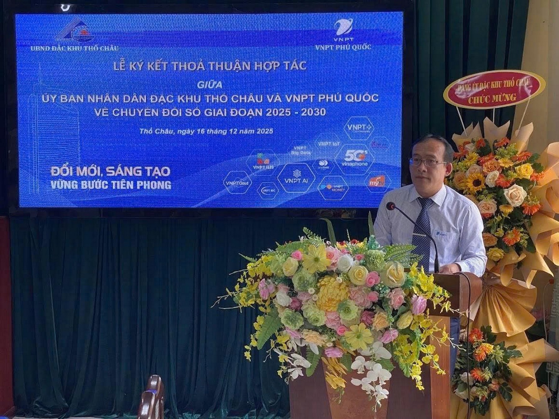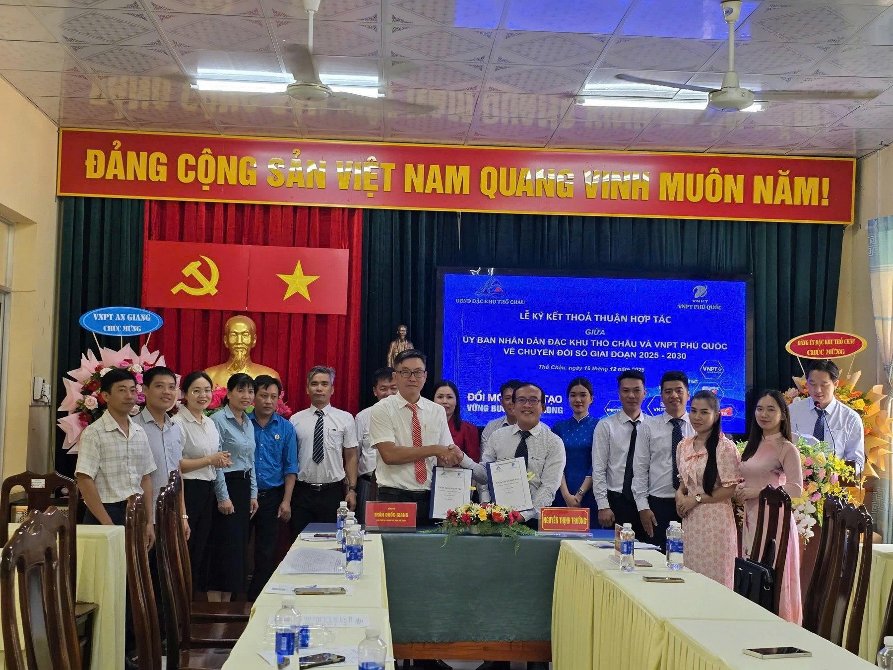 (Cổng TTĐT tỉnh AG)- Ngày 16/12, UBND đặc khu Thổ Châu phối hợp VNPT Phú Quốc (đại diện cho VNPT An Giang) ký kết thỏa thuận hợp tác về chuyển đổi số giai đoạn 2025-2030.