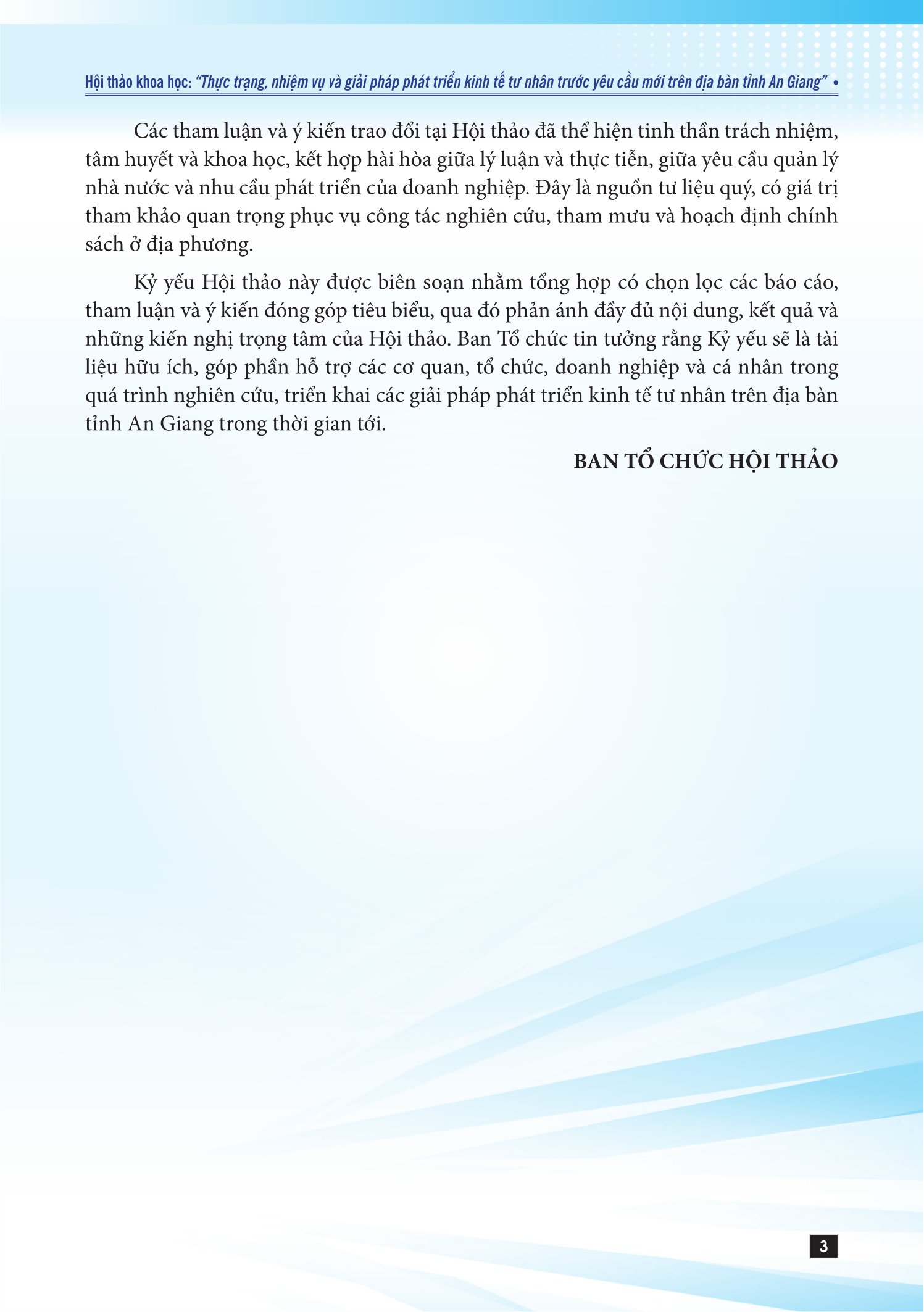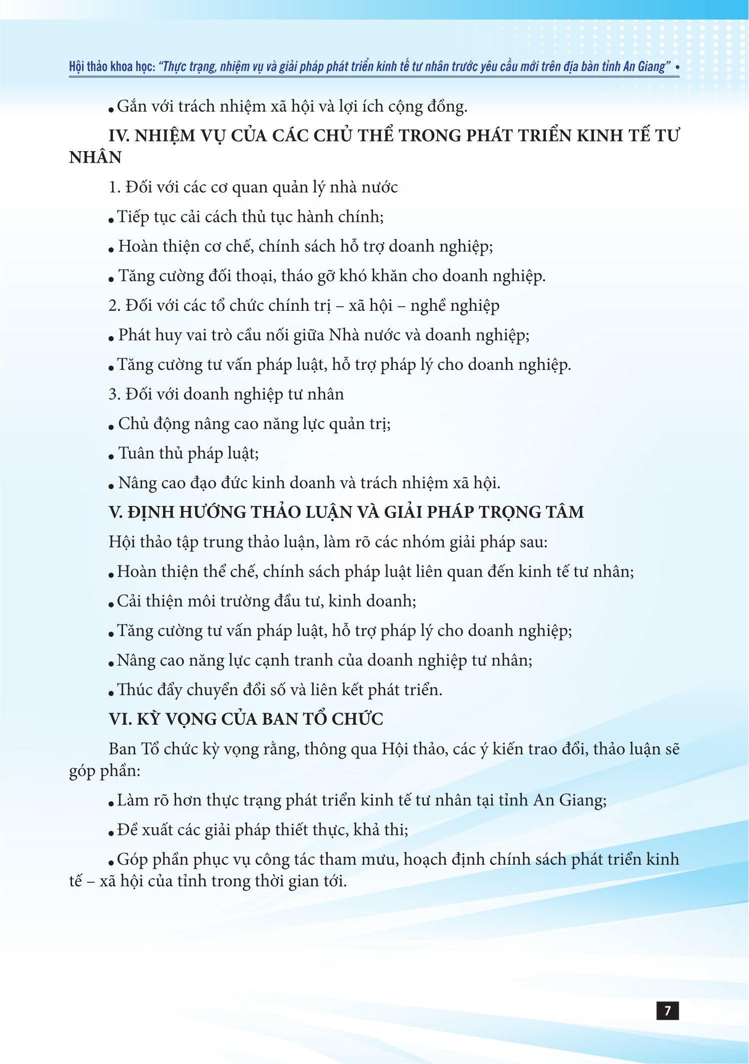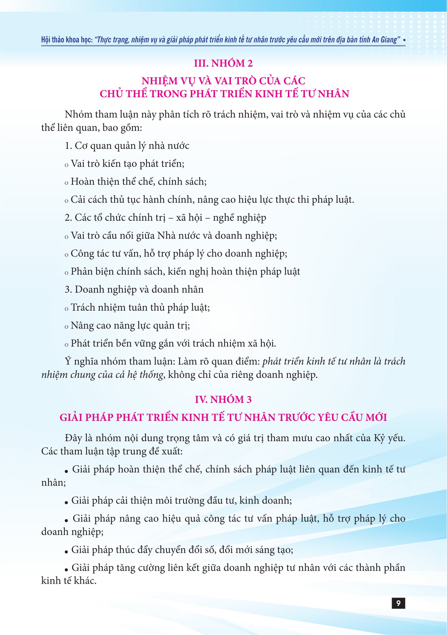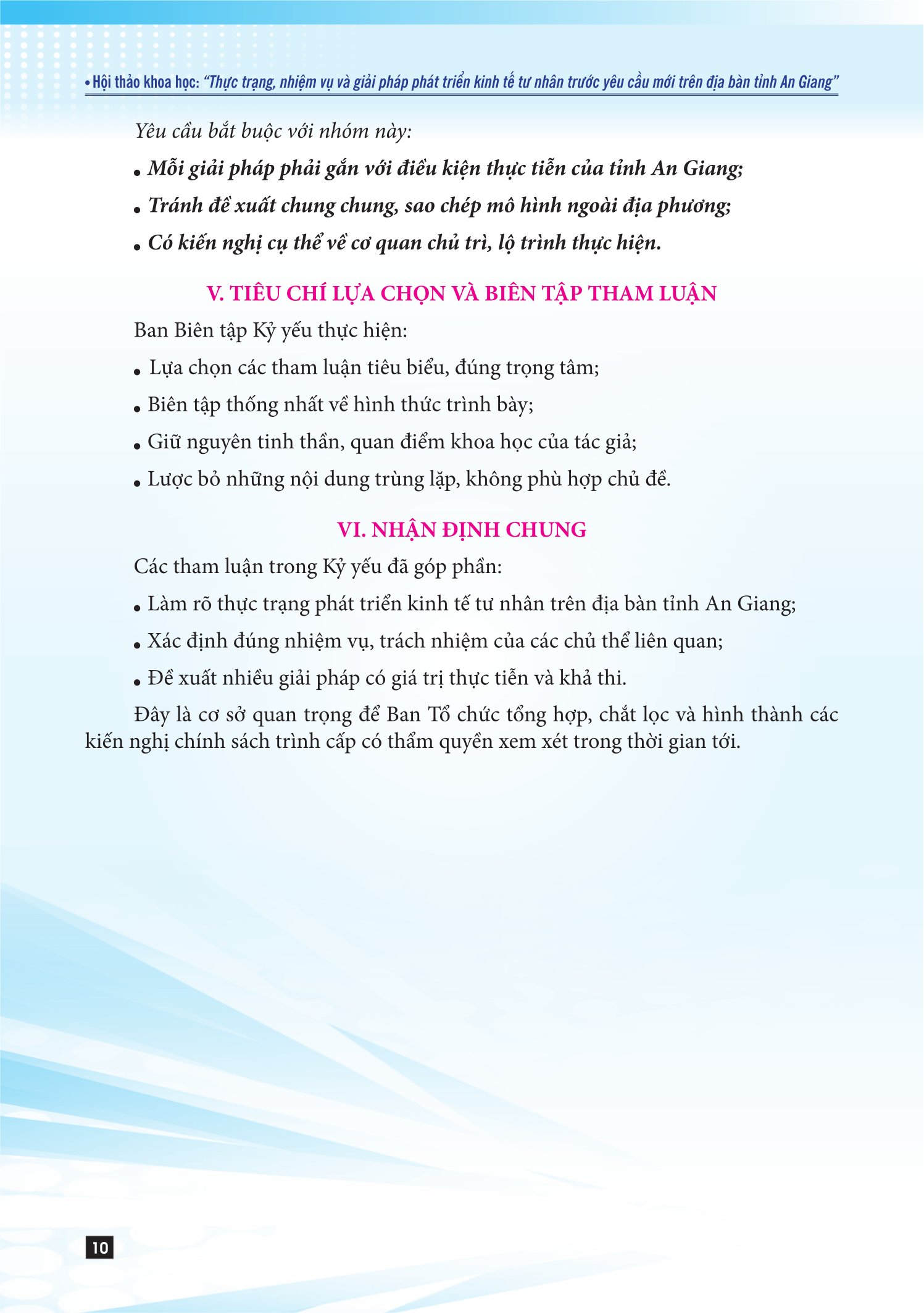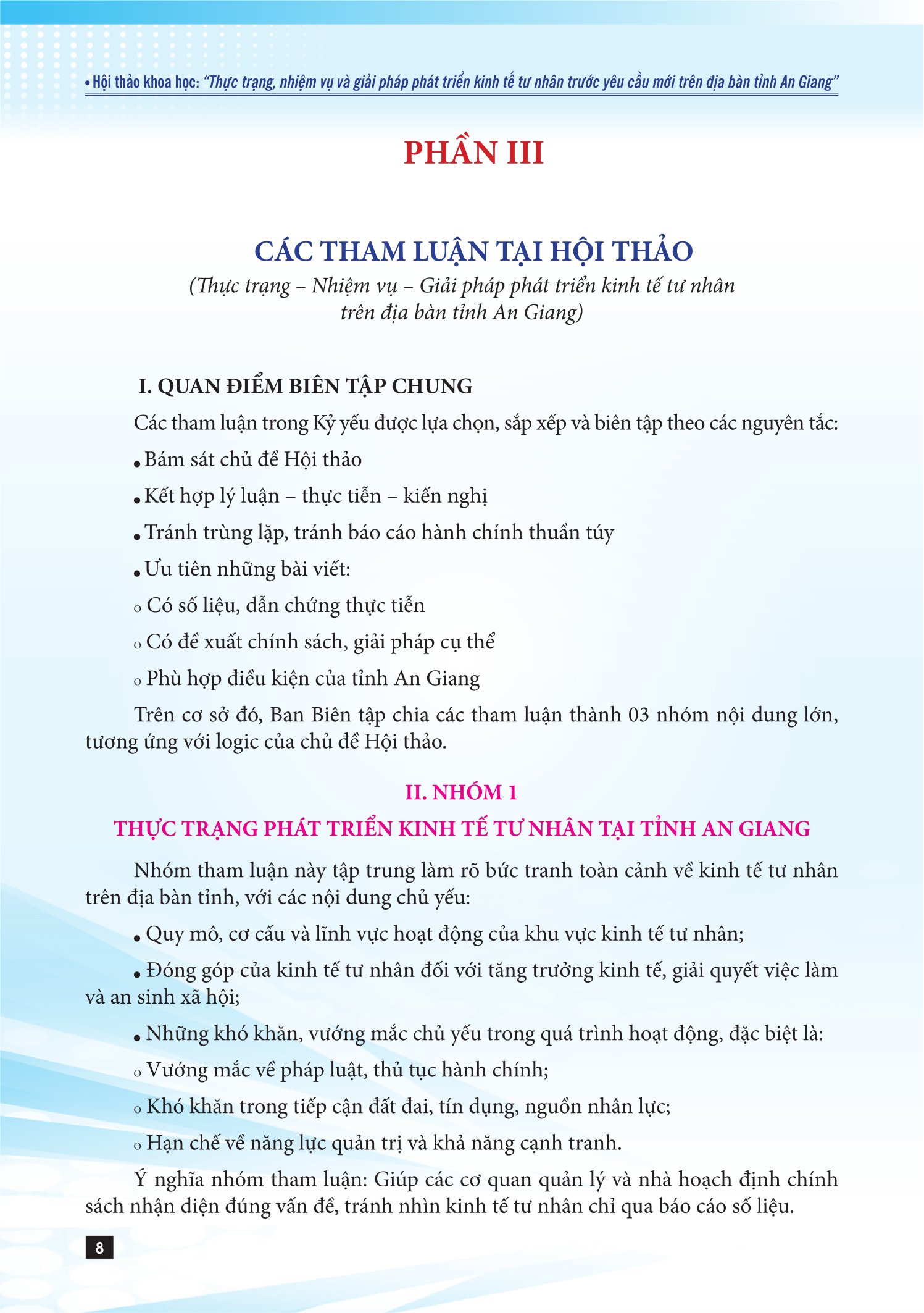 Kỷ yếu về Hội thảo khoa học: "Thực trạng và nhiệm vụ, giải pháp phát triển kinh tế tư nhân trước yêu cầu mới trên địa bàn tỉnh An Giang"