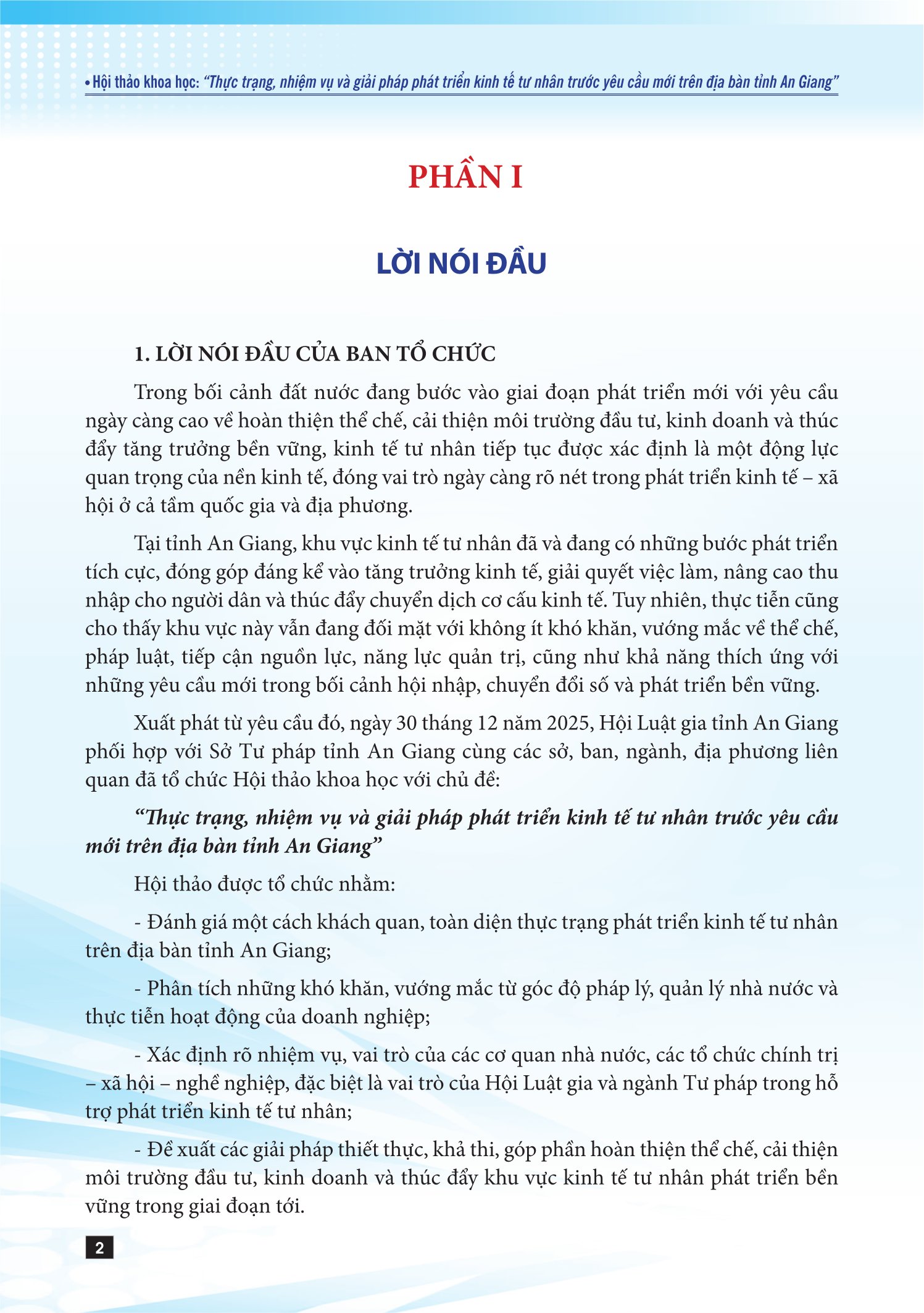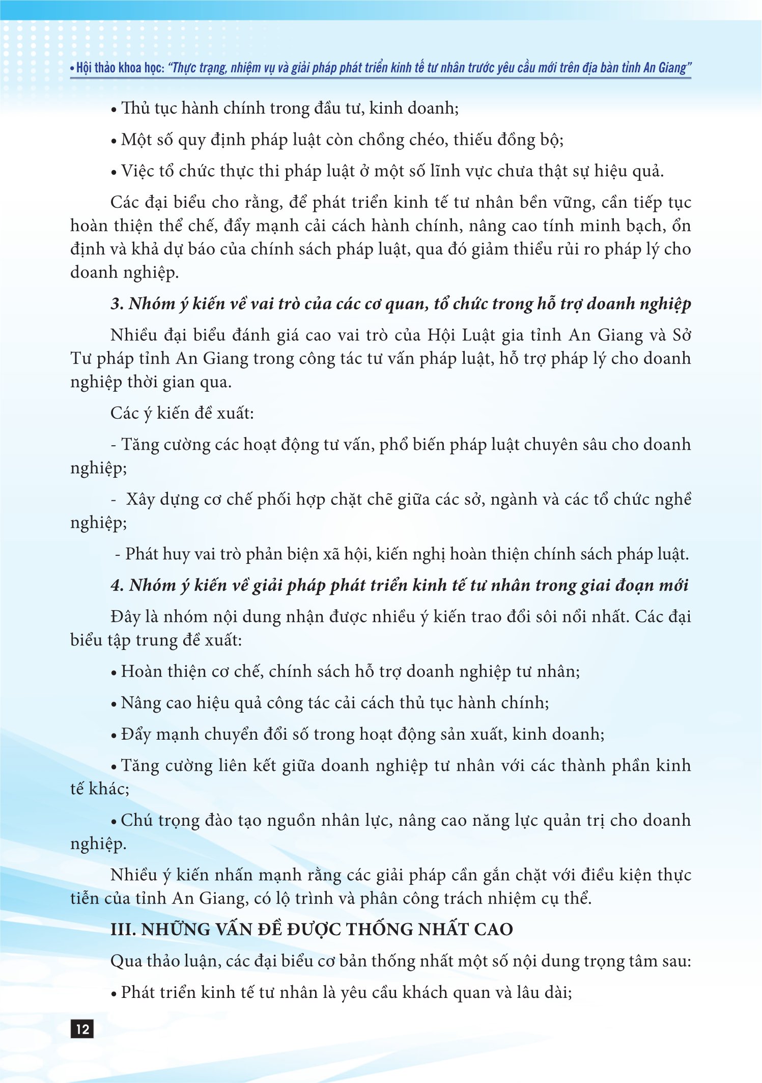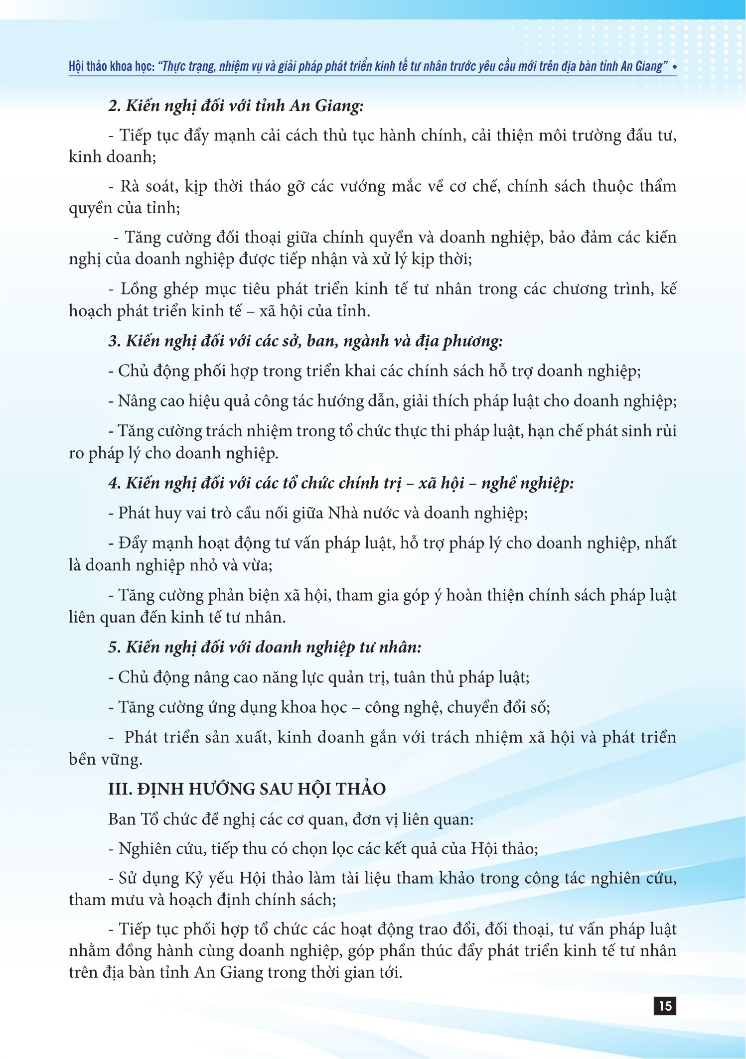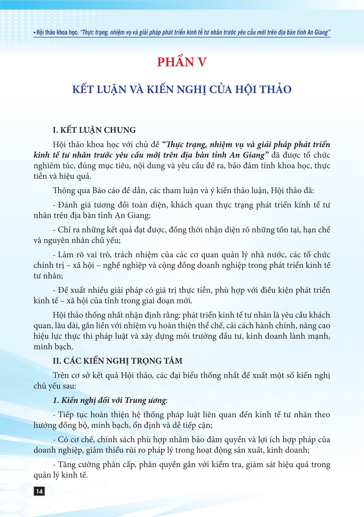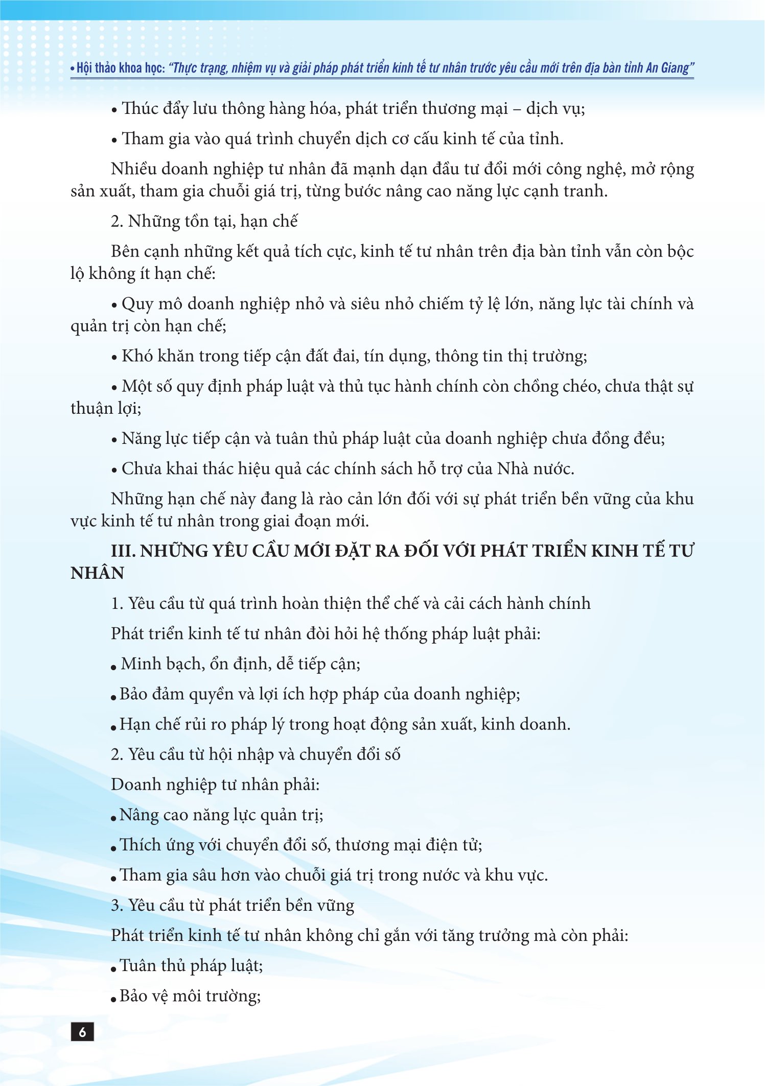Kỷ yếu về Hội thảo khoa học: "Thực trạng và nhiệm vụ, giải pháp phát triển kinh tế tư nhân trước yêu cầu mới trên địa bàn tỉnh An Giang"