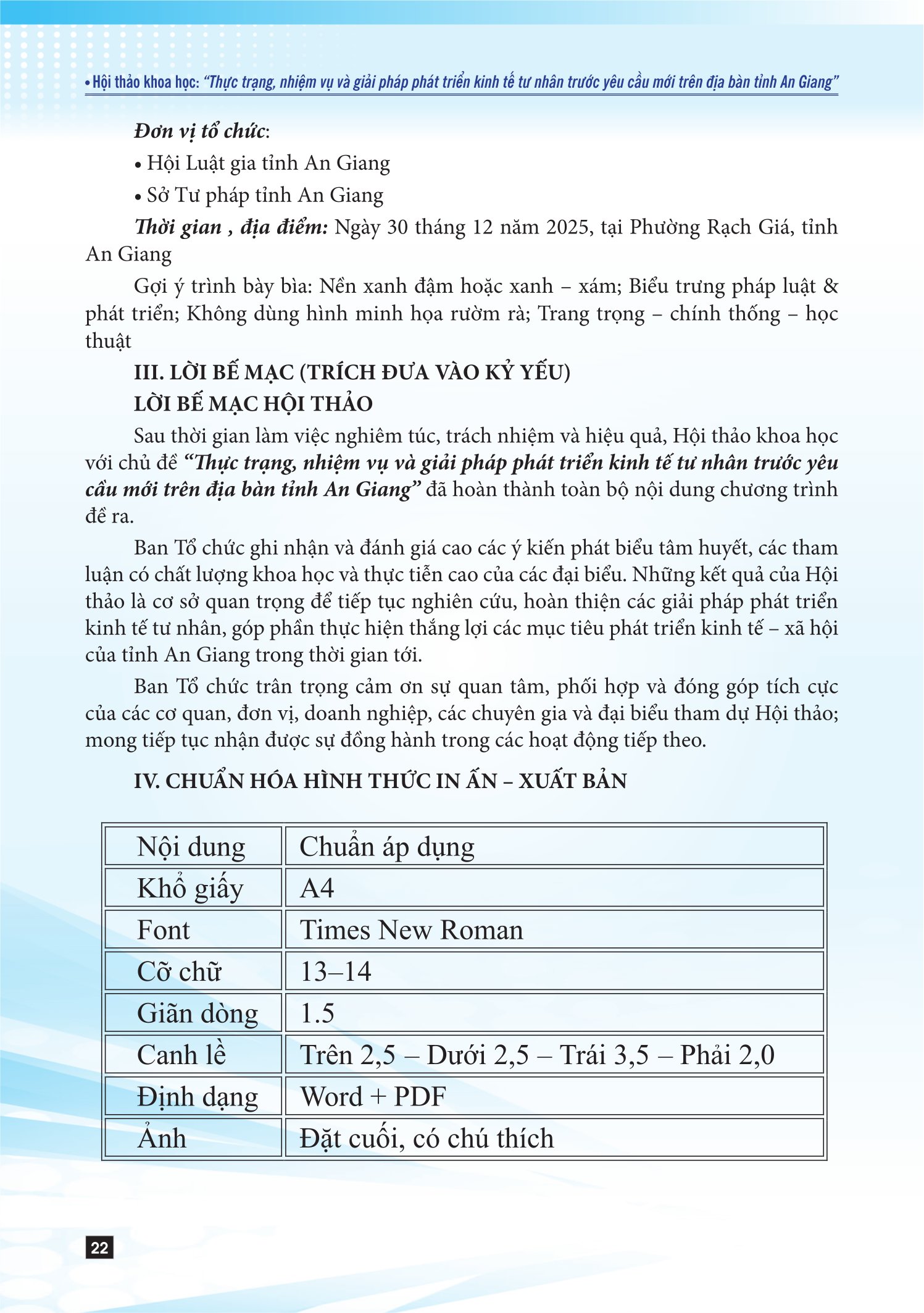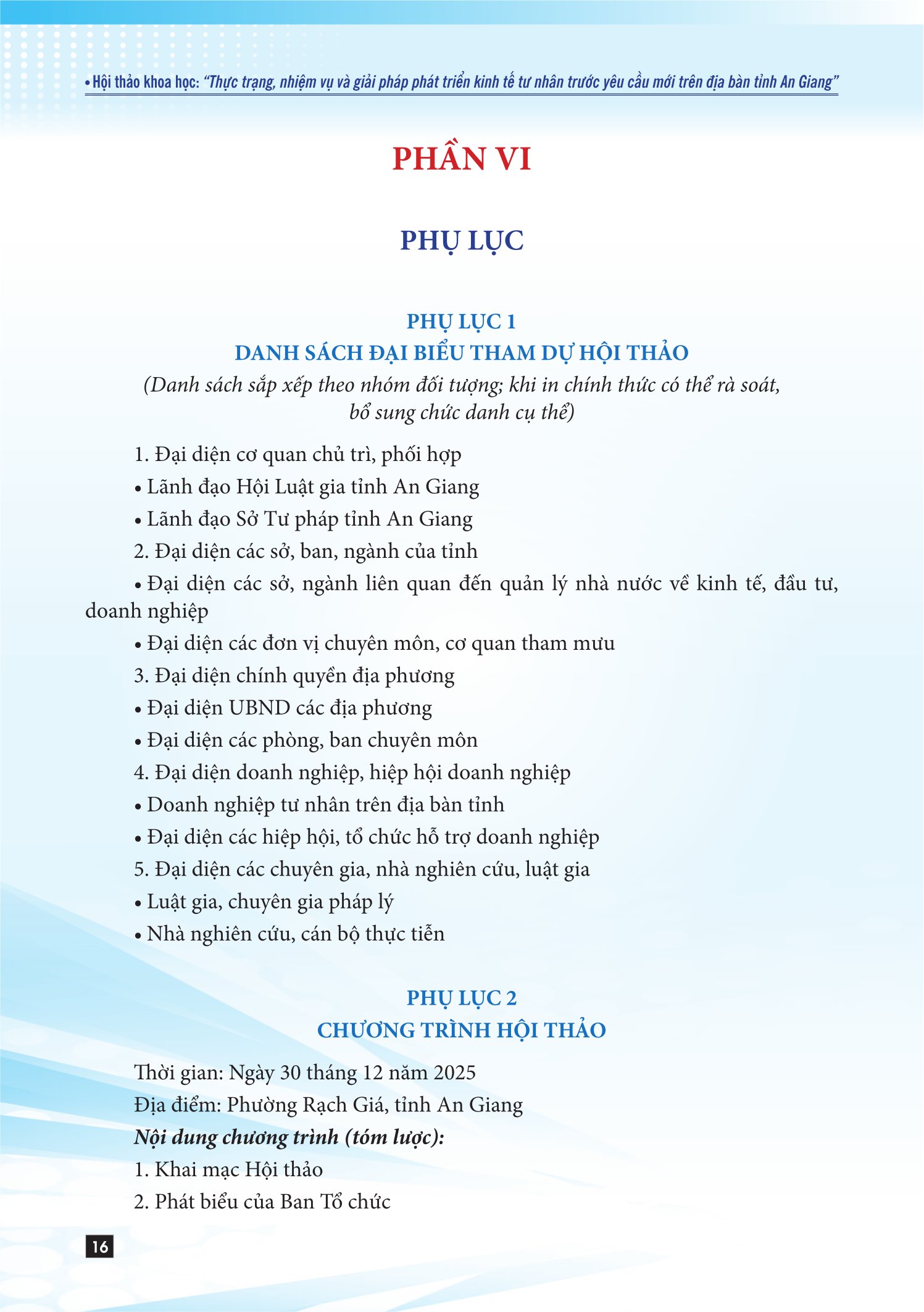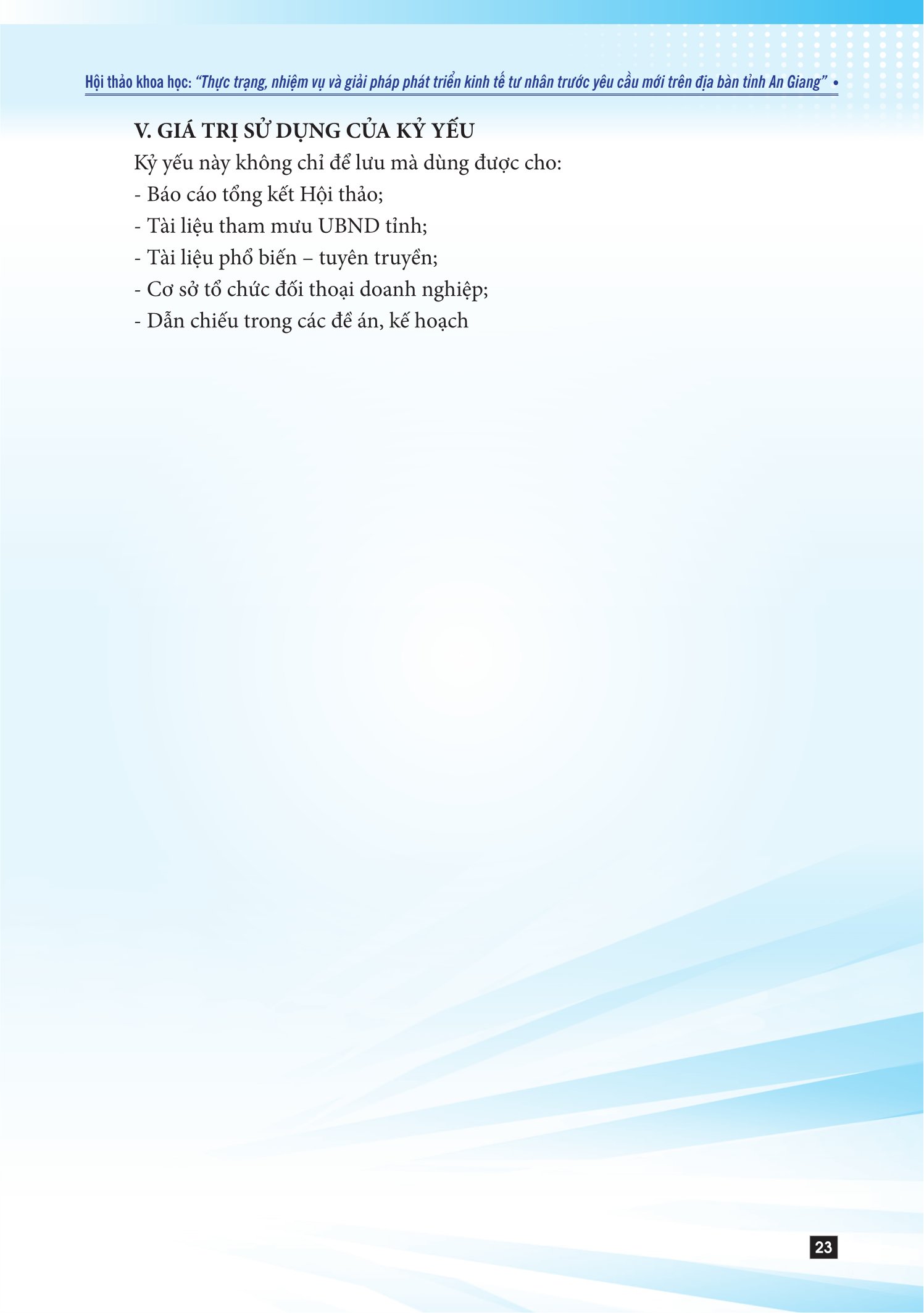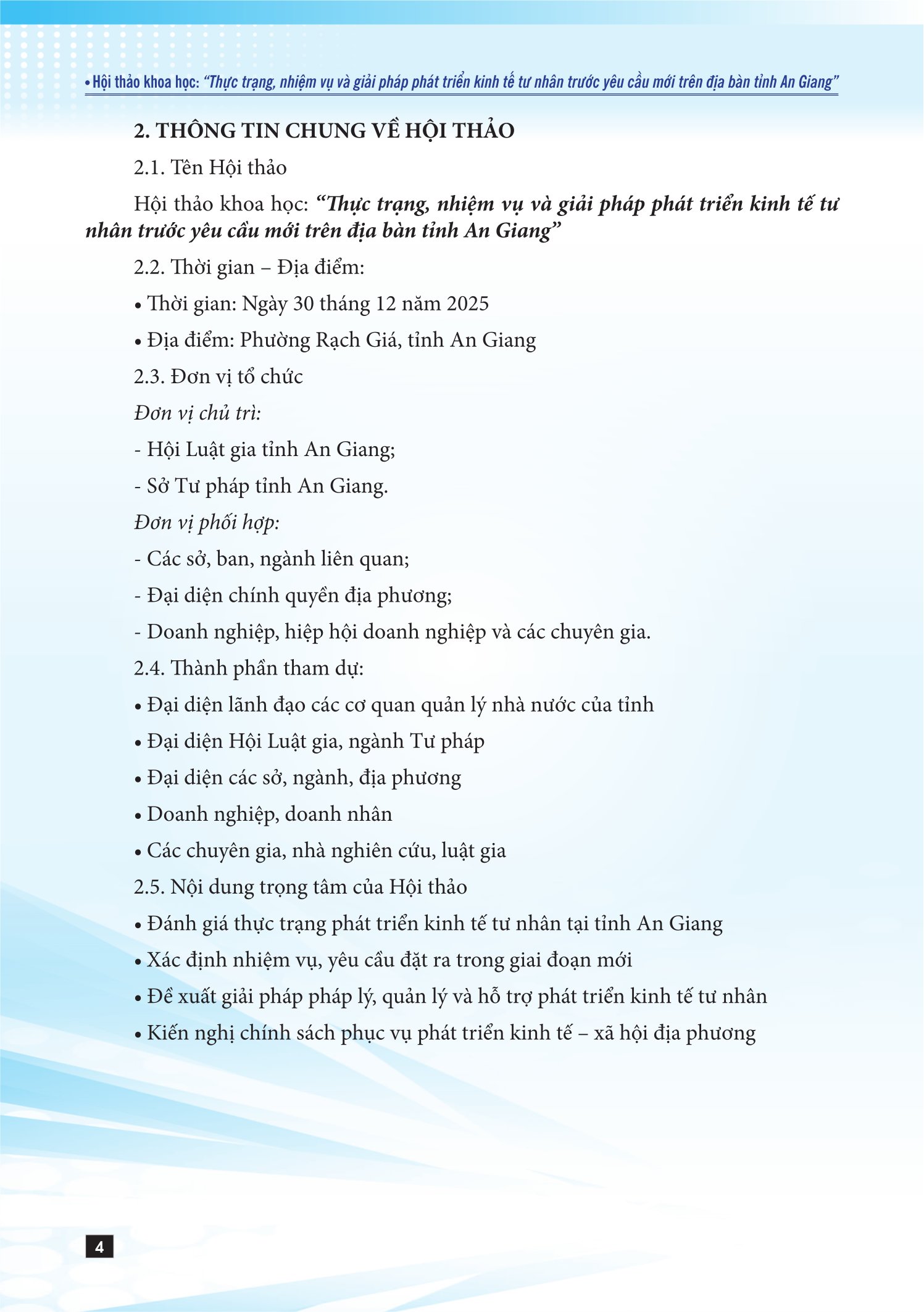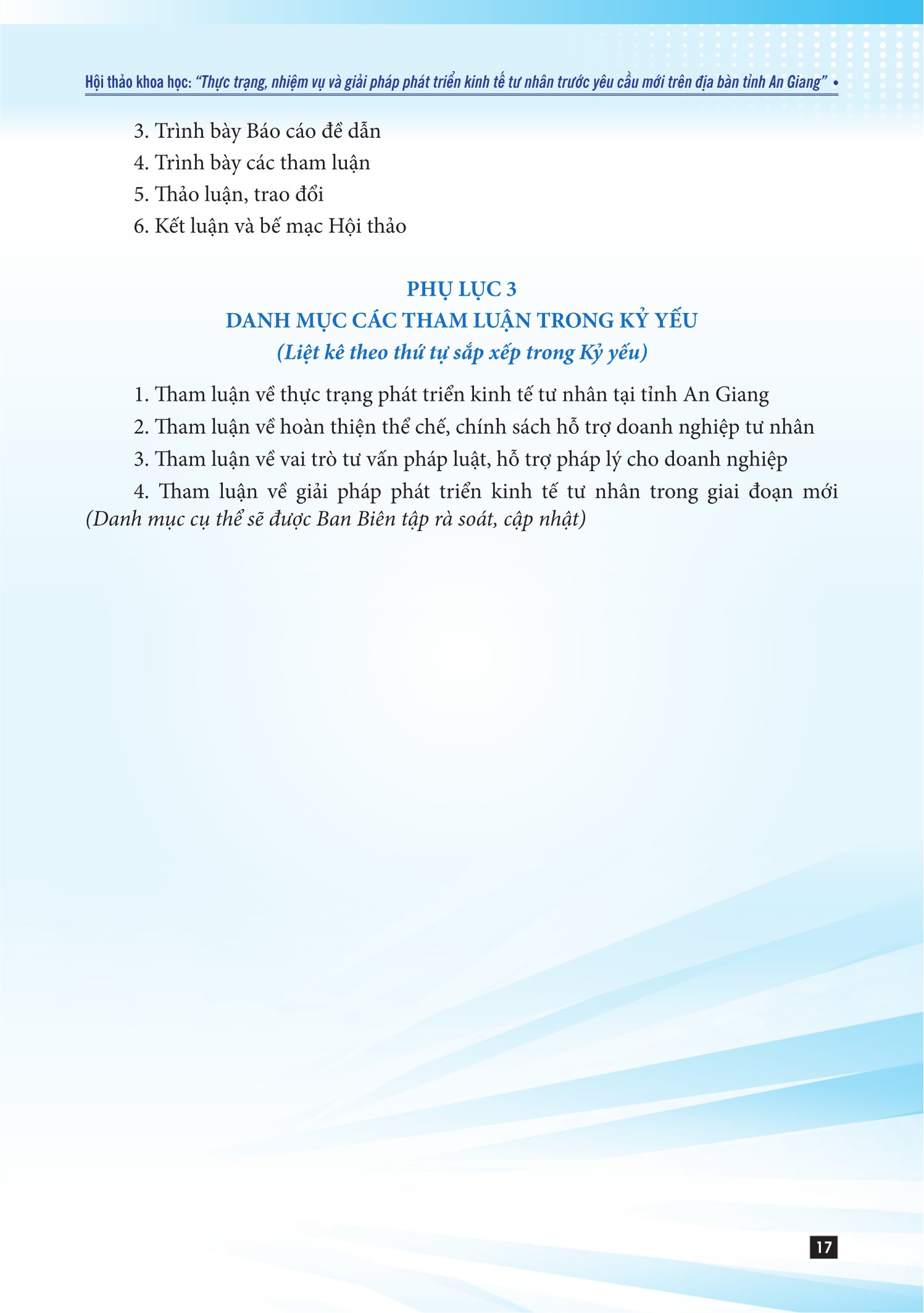 Kỷ yếu về Hội thảo khoa học: "Thực trạng và nhiệm vụ, giải pháp phát triển kinh tế tư nhân trước yêu cầu mới trên địa bàn tỉnh An Giang"