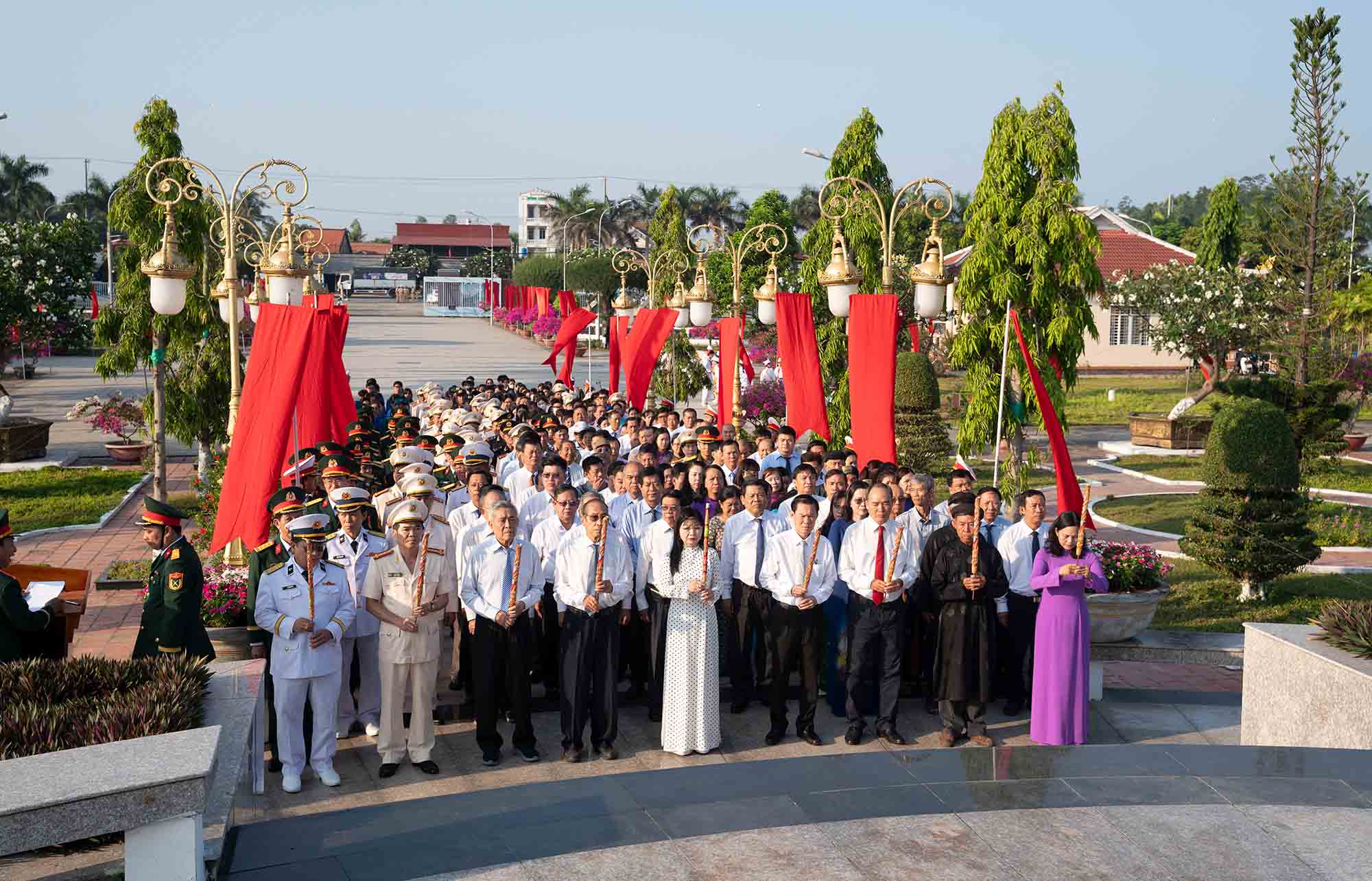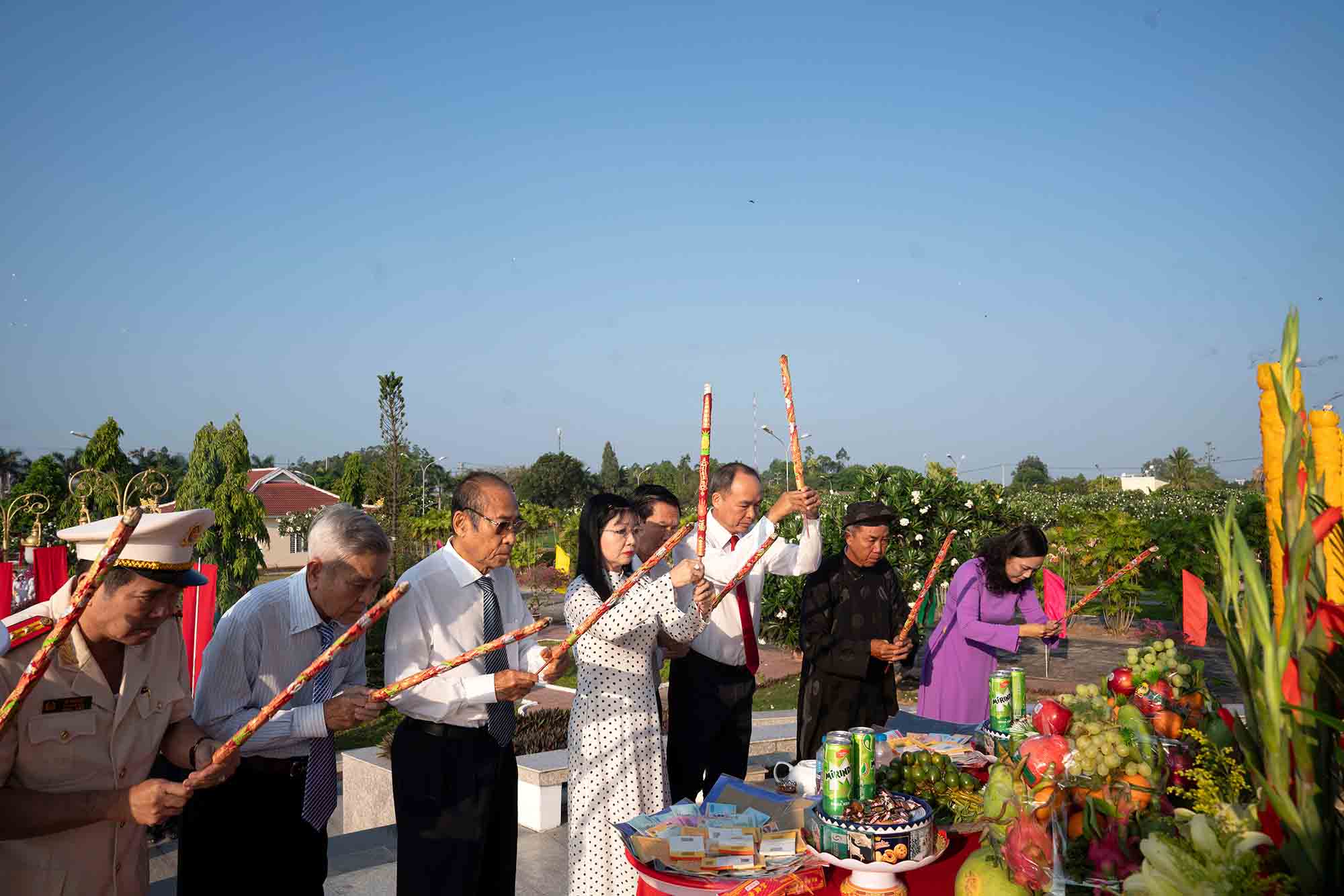Trong không khí trang nghiêm, các đại biểu đã thành kính dành phút mặc niệm, dâng hoa, dâng hương tại Đài tưởng niệm và thắp hương từng phần mộ, bày tỏ lòng biết ơn vô hạn đối với sự hy sinh của các bậc tiền bối cách mạng, các Anh hùng liệt sĩ đã anh dũng chiến đấu, hy sinh để giành độc lập cho dân tộc, đem lại tự do, hòa bình cho Nhân dân, xây dựng và bảo vệ Tổ quốc.
