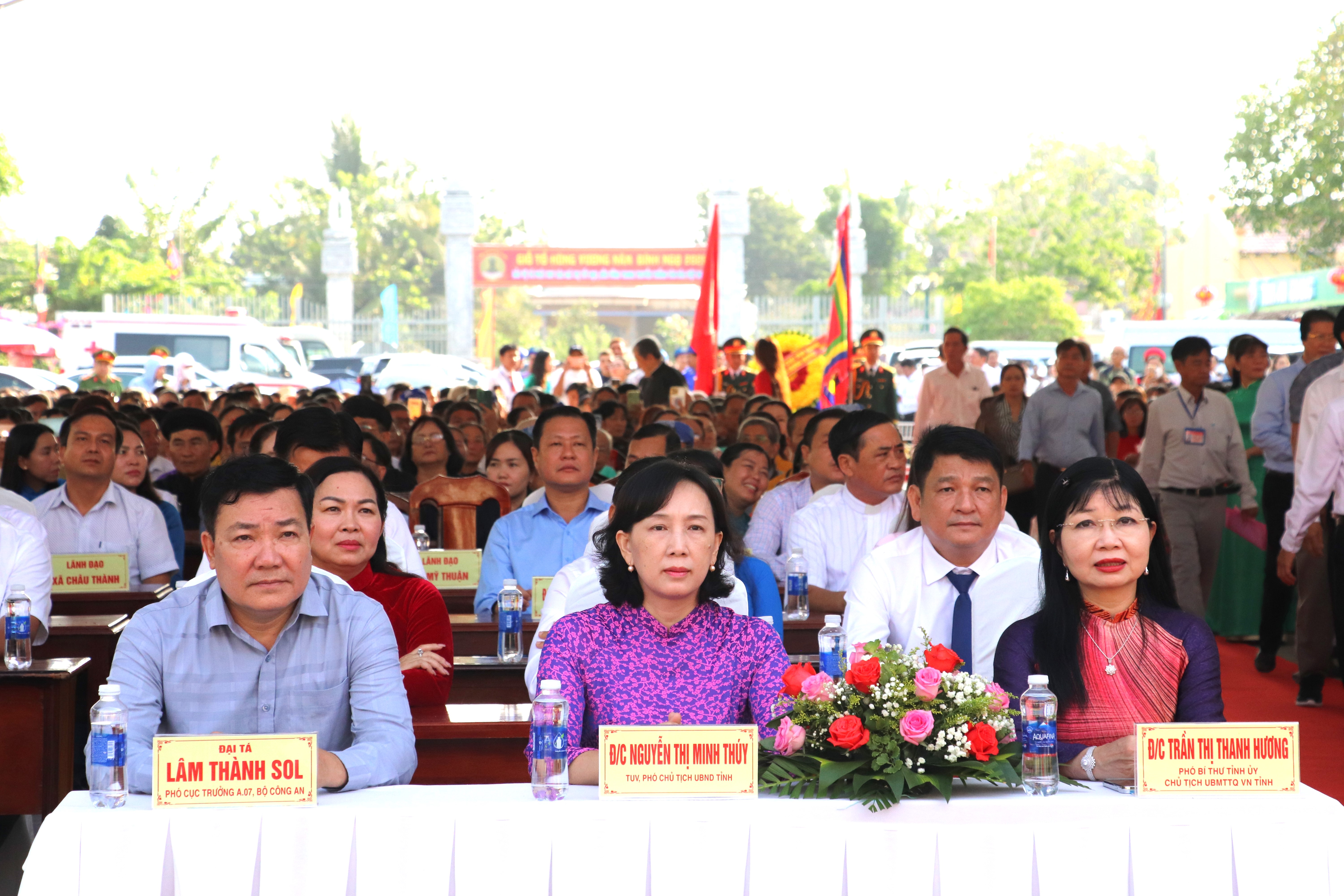 Cùng dự có các đồng chí: Phó Bí thư Tỉnh ủy, Chủ tịch Ủy ban MTTQ Việt Nam tỉnh An Giang Trần Thị Thanh Hương; Phó Chủ tịch UBND tỉnh An Giang Nguyễn Thị Minh Thúy; các cơ quan, đơn vị, các tôn giáo và đông đảo người dân tham dự lễ dâng hương.