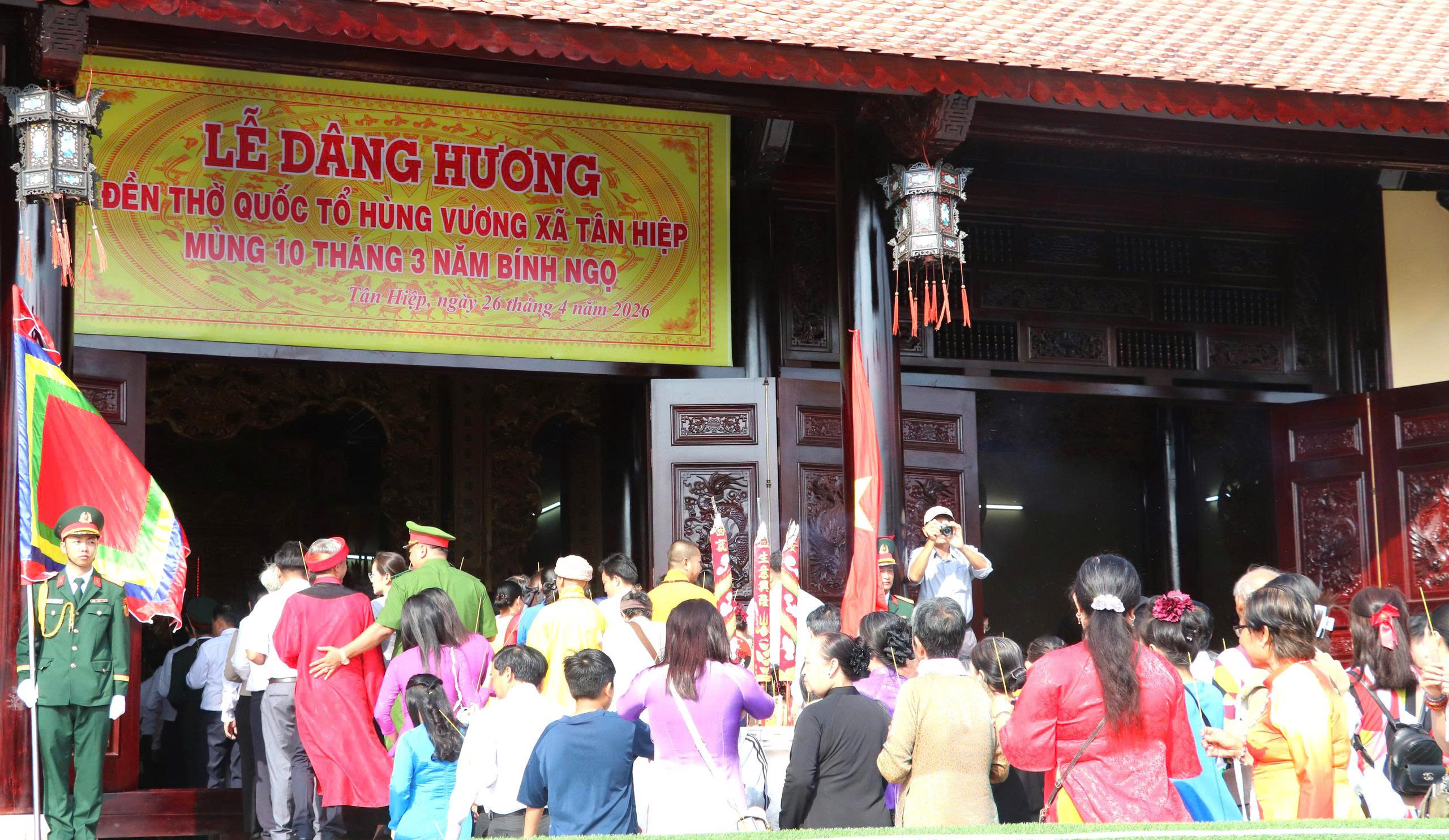 Đền thờ Quốc Tổ Hùng Vương ở xã Tân Hiệp được xây dựng năm 1957, theo nguyện vọng của nhân dân địa phương để tưởng nhớ và tri ân các Vua Hùng, những người đã có công dựng nước và giữ nước trong lịch sử Việt Nam. Việc xây dựng đền xuất phát từ lòng biết ơn, truyền thống uống nước nhớ nguồn cũng như mong muốn gìn giữ giá trị văn hóa dân tộc./.