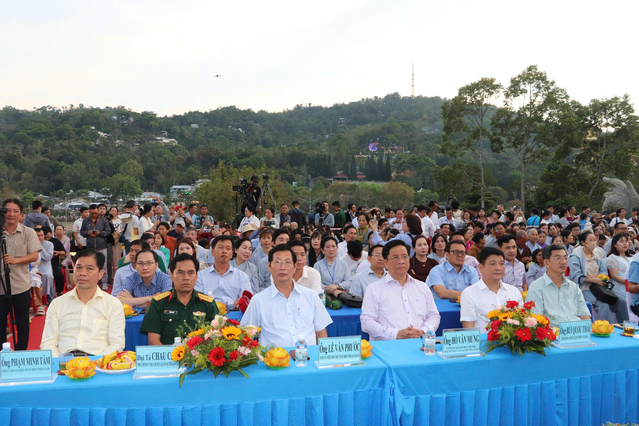 Phát biểu khai mạc, Phó Chủ tịch UBND xã Núi Cấm Nguyễn Hùng Cường cho biết lễ hội được tổ chức nhằm tôn vinh các giá trị văn hóa truyền thống, lan tỏa tinh thần đoàn kết cộng đồng, cầu mong "quốc thới, dân an, mưa thuận gió hòa". Những ngọn đèn hoa đăng được thắp sáng là biểu tượng của niềm tin, hy vọng và sự gắn kết giữa con người với con người, giữa con người với thiên nhiên.