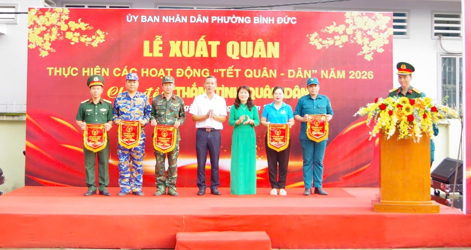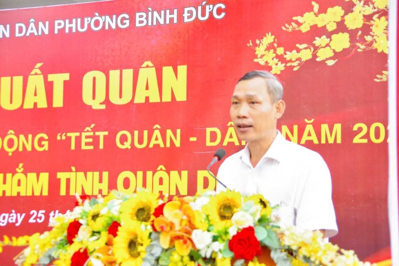 Phát biểu tại buổi lễ, Chủ tịch UBND phường, Trưởng ban Chỉ đạo “Tết Quân – Dân” phường Bình Đức Võ Văn Hòa nhấn mạnh: Các hoạt động “Tết Quân – Dân” năm 2026 là hoạt động dân vận với nhiều nội dung thiết thực hướng đến an sinh xã hội, hậu phương Quân đội, đền ơn đáp nghĩa và tham gia xây dựng kết cấu hạ tầng nông thôn. Tạo khí thế thi đua sôi nổi, động viên, cổ vũ tinh thần cán bộ, công chức, viên chức, cán bộ, chiến sĩ lực lượng vũ trang và nhân dân tích cực tham gia thực hiện các công trình, phần việc trong các hoạt động “Tết Quân – Dân” năm 2026 đạt kết quả cao nhất.