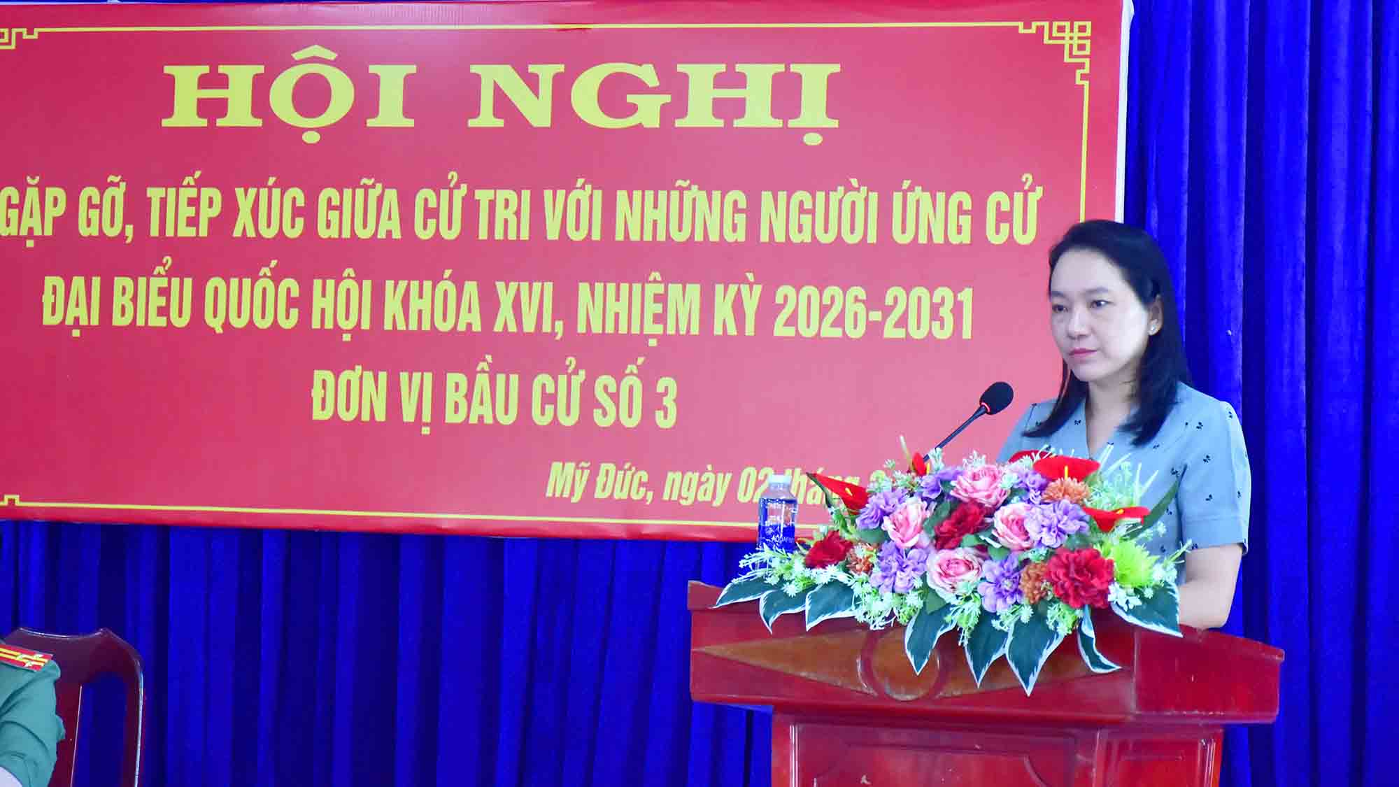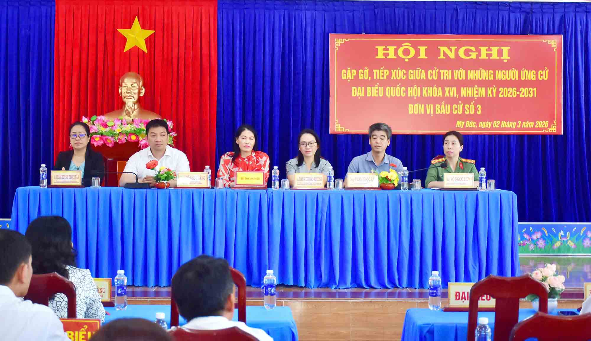 (Cổng TTĐT tỉnh AG)- Chiều 02/3, Ban Thường trực Ủy ban MTTQ Việt Nam tỉnh An Giang phối hợp UBND tỉnh An Giang, chính quyền địa phương tổ chức Hội nghị tiếp xúc cử tri để ứng cử viên đơn vị bầu cử số 3 vận động bầu cử đại biểu Quốc hội khóa XVI, nhiệm kỳ 2026 – 2031, tại xã Mỹ Đức.