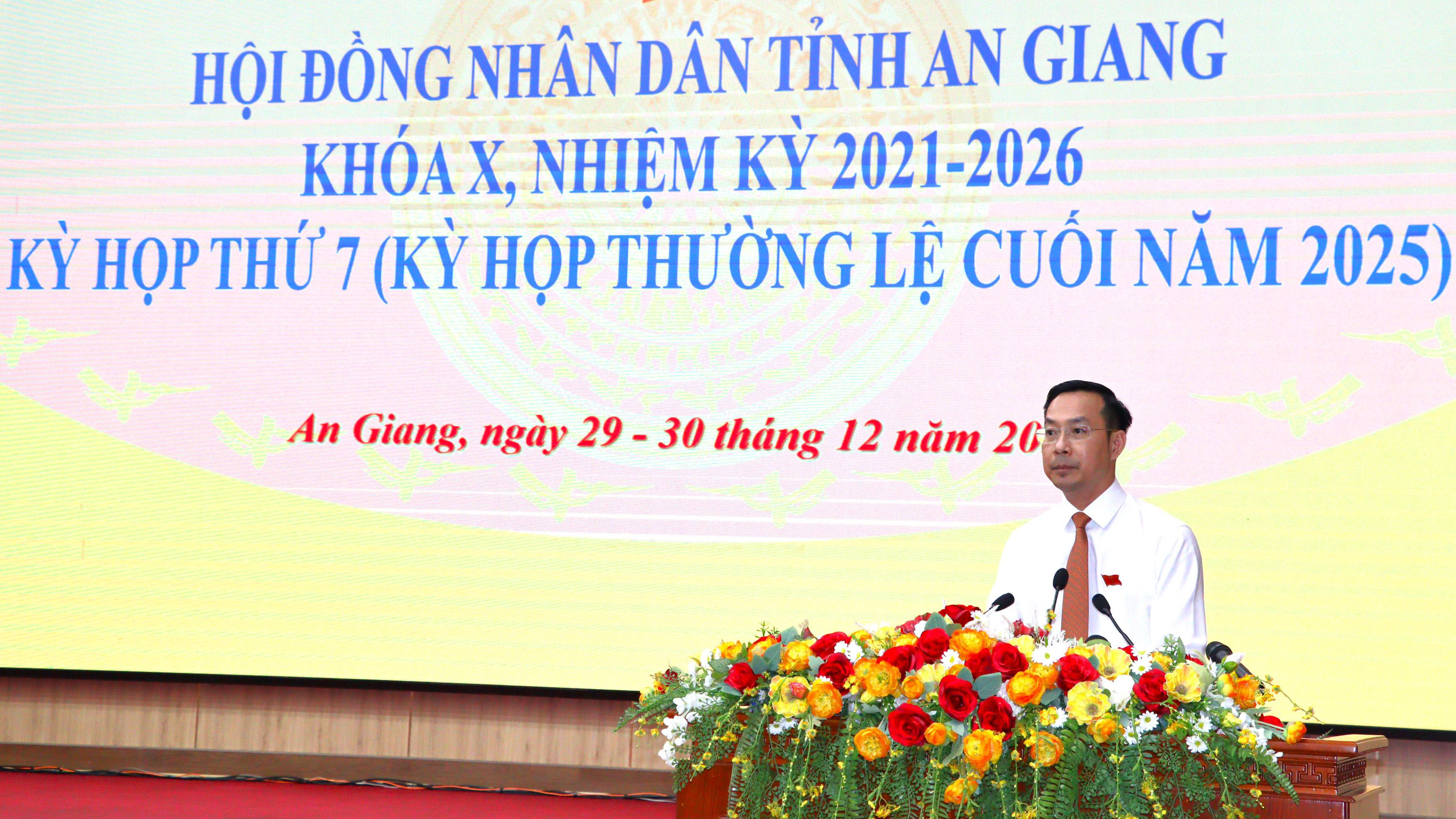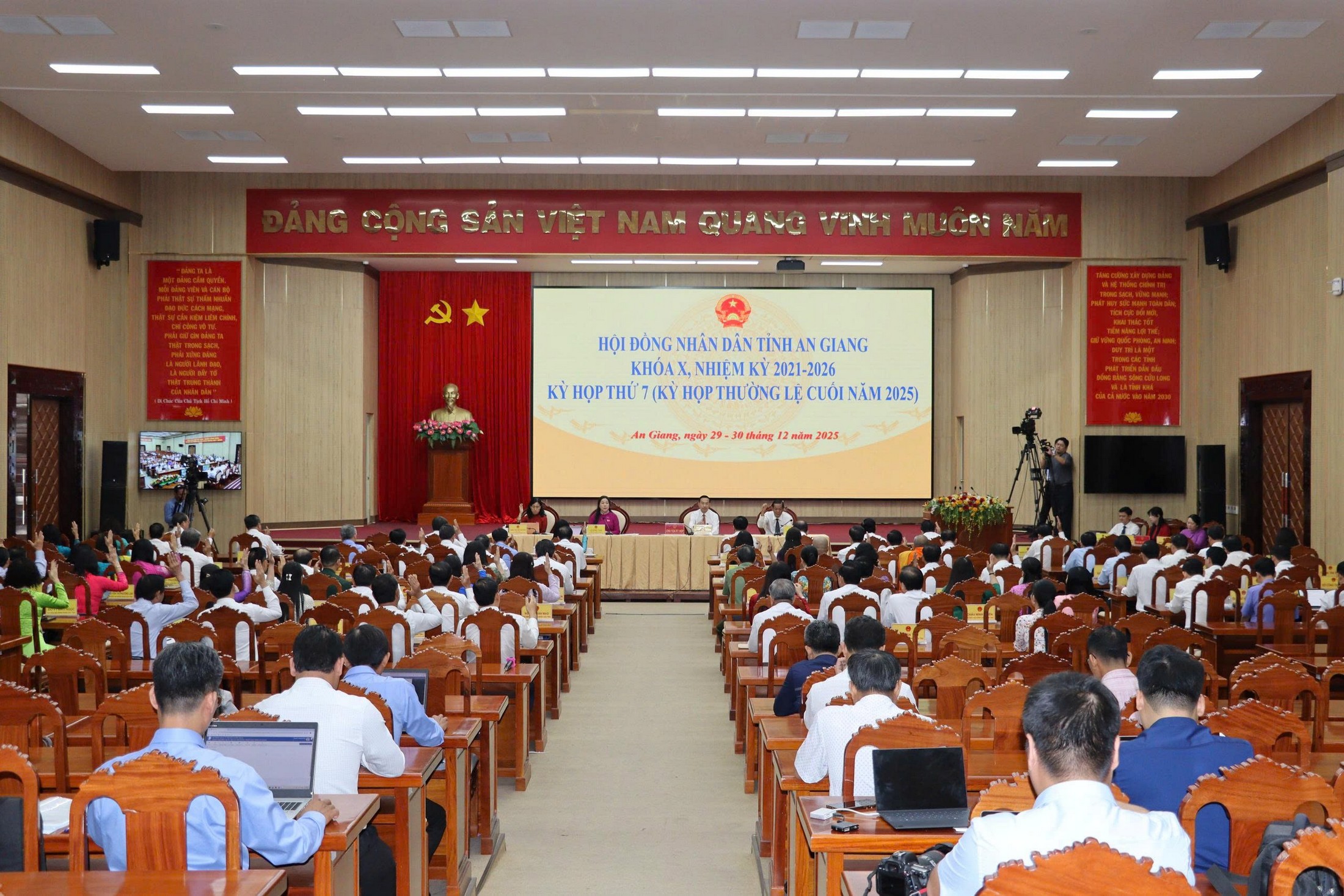 (Cổng TTĐT tỉnh AG)- Ngày 30/12, Hội đồng nhân dân (HĐND) tỉnh tổ chức bế mạc kỳ họp thứ 7 (kỳ họp thường lệ cuối năm 2025) HĐND tỉnh An Giang khóa X, nhiệm kỳ 2021 – 2026.
