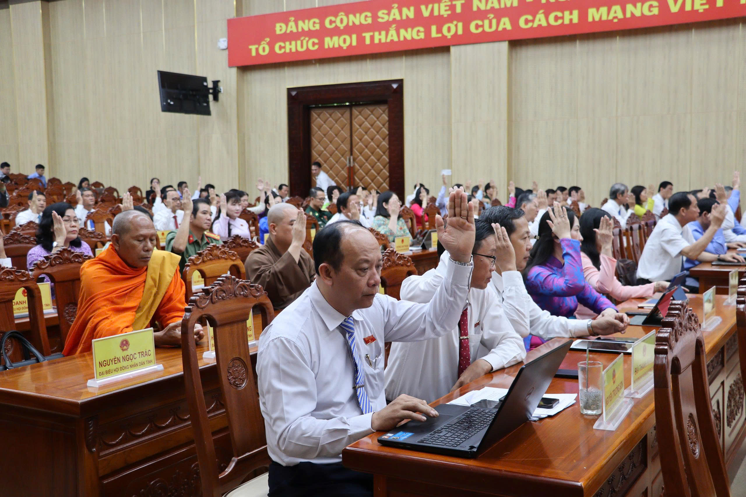 Các đại biểu cũng đã thống nhất biểu quyết thông qua các nghị quyết về kế hoạch đầu tư công năm 2026; chính sách hỗ trợ sản xuất nông nghiệp để khôi phục sản xuất vùng bị thiệt hại do thiên tai, dịch hại thực vật trên địa bàn tỉnh; quy định tiêu chí, điều kiện, trình tự, thủ tục, nội dung và mức hỗ trợ đối với sản xuất sản phẩm, cung cấp dịch vụ công nghệ số; chính sách đặc thù cho phát triển công nghiệp bán dẫn; hỗ trợ, ưu đãi doanh nghiệp tham gia chuỗi cung ứng bán dẫn; phê duyệt đề án khai thác cảng An Thới, đặc khu Phú Quốc; quy định đối tượng, mức chi và kinh phí thăm chúc Tết Nguyên đán hàng năm của tỉnh; quy định chính sách hỗ trợ đối với người có công với cách mạng, thân nhân và gia đình người có công với cách mạng trên địa bàn tỉnh; quy định tiêu chí thành lập, tiêu chí về số lượng thành viên Tổ bảo vệ an ninh, trật tự; mức hỗ trợ, bồi dưỡng đối với người tham gia lực lượng an ninh, trật tự ở cơ sở…