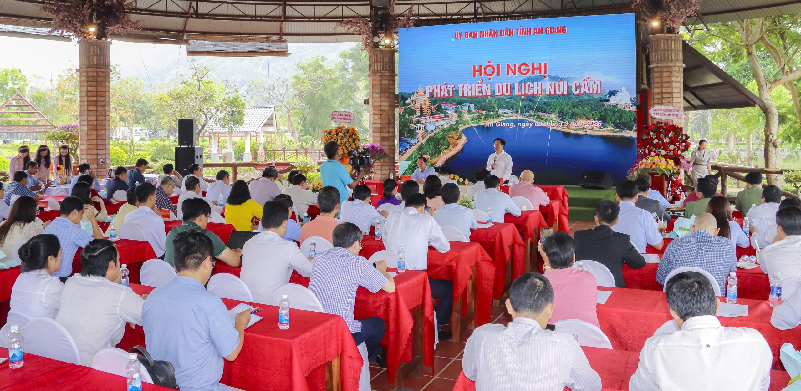 (Cổng TTĐT tỉnh AG) – Ngày 08/3, tại Lâm viên Núi Cấm, UBND tỉnh An Giang tổ chức Hội nghị phát triển du lịch Núi Cấm với chủ đề “Thực trạng và định hướng phát triển du lịch Núi Cấm, tỉnh An Giang”. Hội nghị do Ủy viên Ban Chấp hành Trung ương Đảng, Phó Bí thư Tỉnh ủy, Chủ tịch UBND tỉnh Hồ Văn Mừng chủ trì. Cùng dự có Phó Chủ tịch UBND tỉnh Lê Văn Phước; lãnh đạo các sở, ban, ngành tỉnh; các doanh nghiệp kinh doanh dịch vụ du lịch, lữ hành,…