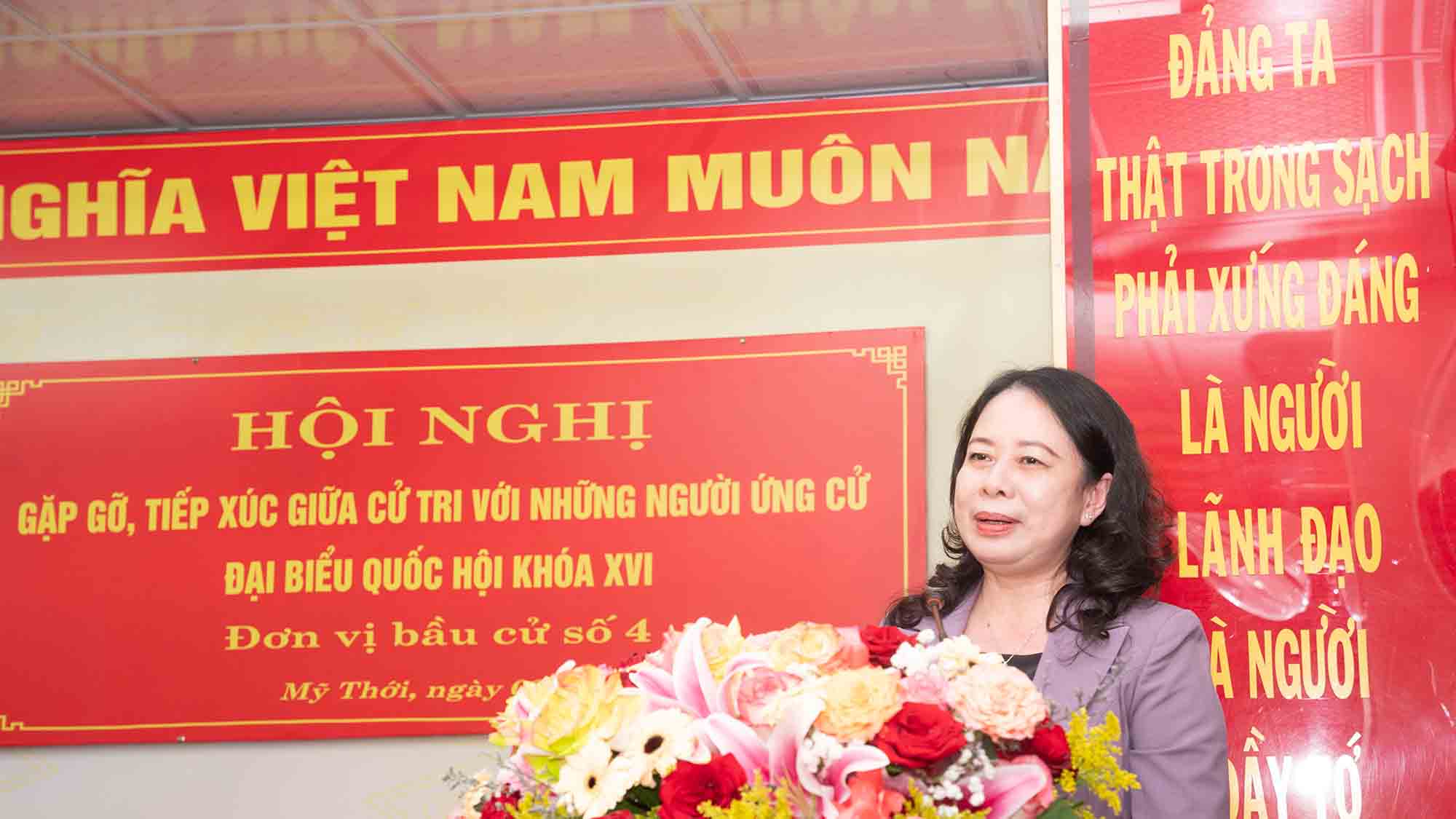 Phát biểu tại Hội nghị, Bí thư Trung ương Đảng, Phó Chủ tịch nước, Phó Chủ tịch Hội đồng bầu cử Quốc gia Võ Thị Ánh Xuân trân trọng cảm ơn cử tri về các ý kiến đóng góp chân thành, thiết thực, thể hiện sự quan tâm đến quá trình phát triển của địa phương, tỉnh An Giang và đất nước.