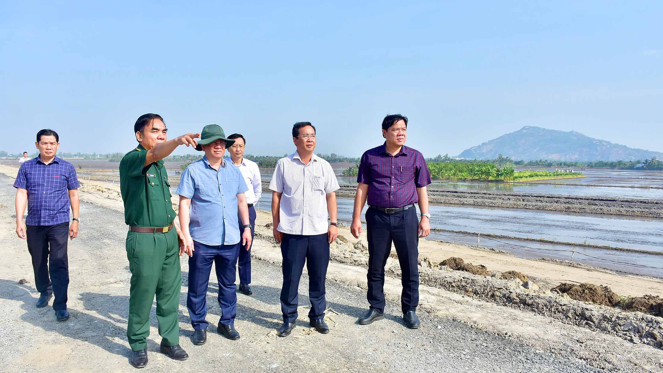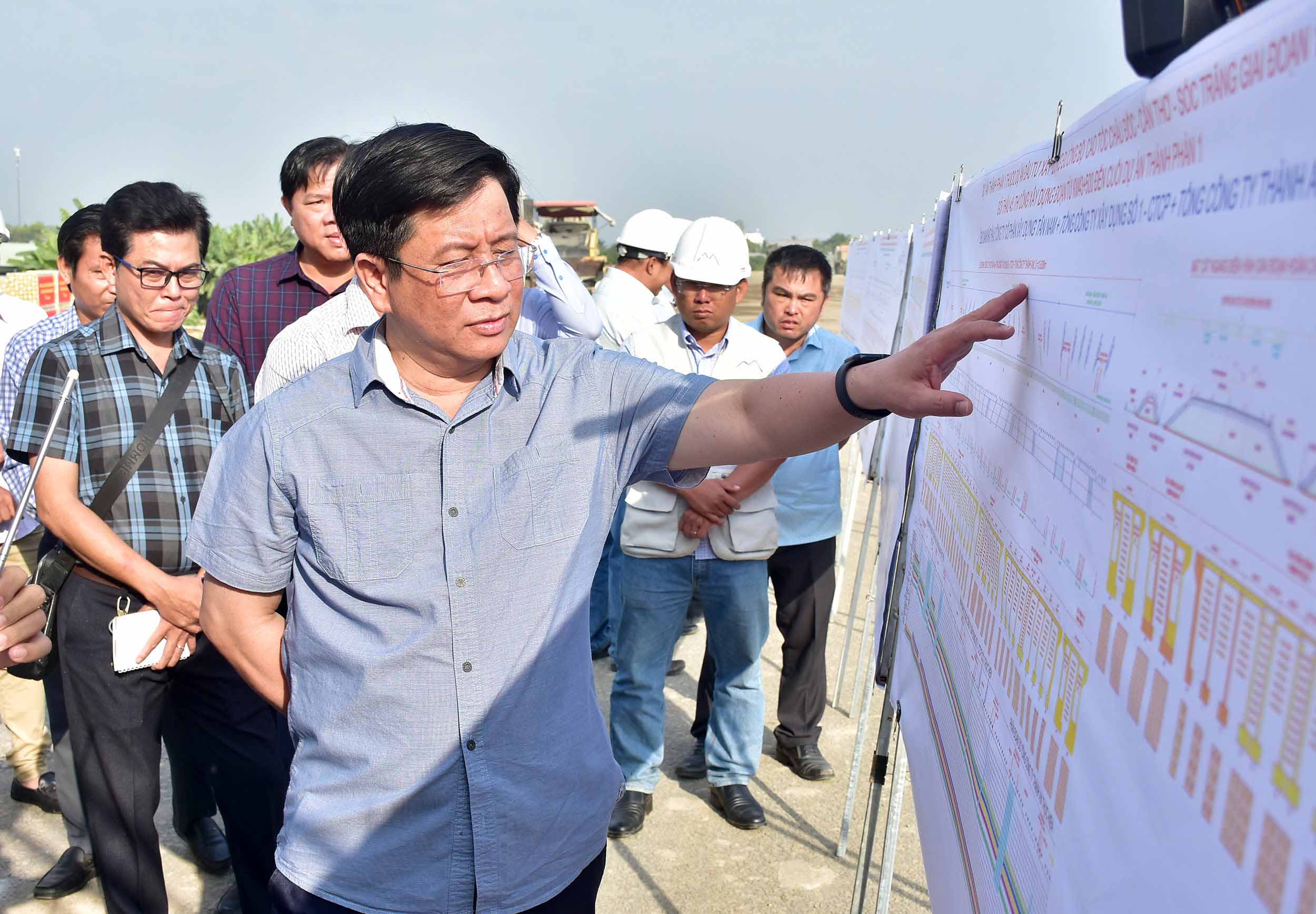 (Cổng TTĐT tỉnh AG)-Ngày 11/01, Ủy viên Dự khuyết Ban Chấp hành Trung ương Đảng, Chủ tịch UBND tỉnh An Giang Hồ Văn Mừng đến kiểm tra, đôn đốc các nhà thầu nhằm đẩy nhanh tiến độ thi công Dự án thành phần 1 thuộc Dự án tuyến đường bộ cao tốc Châu Đốc – Cần Thơ – Sóc Trăng giai đoạn 1.