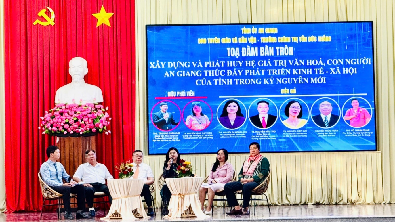 (Cổng TTĐT tỉnh AG)- Hội thảo khoa học cấp tỉnh “Xây dựng và phát huy hệ giá trị văn hóa, con người An Giang thúc đẩy phát triển kinh tế - xã hội của tỉnh trong kỷ nguyên mới” do Ban Tuyên giáo và Dân vận Tỉnh ủy phối hợp Trường Chính trị Tôn Đức Thắng vừa được tổ chức không chỉ là sự kiện học thuật thuần túy, mà còn là lời hiệu triệu của đội ngũ trí thức tỉnh nhà cùng chung tay định hình bản sắc địa phương trong một giai đoạn lịch sử đặc biệt: An Giang sau sáp nhập.