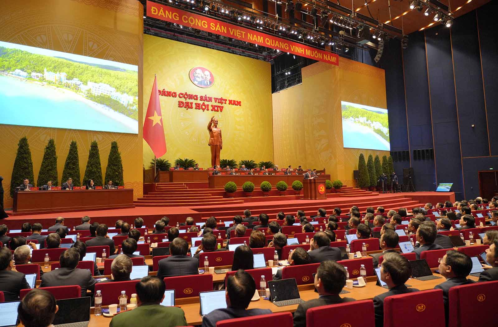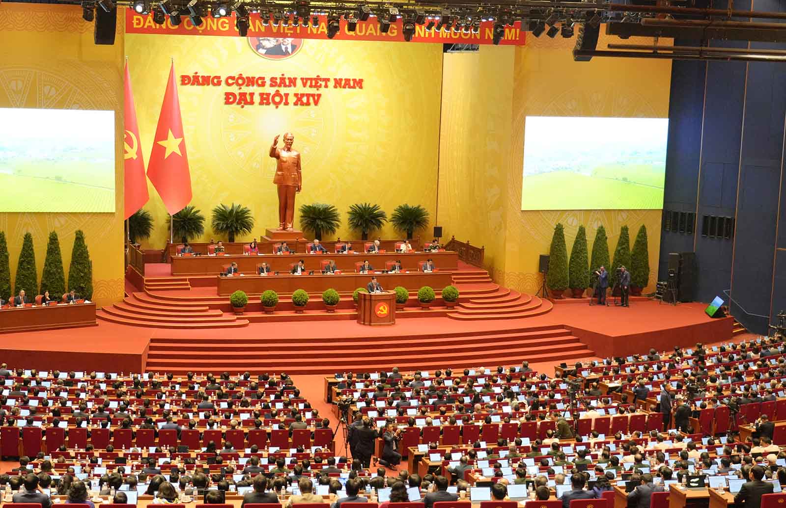 Chiều 21/1, Đại hội XIV của Đảng được nghe nhiều tham luận của các bộ, ngành, cơ quan Trung ương, địa phương, cơ sở. Một số tham luận như: “Phát huy sức mạnh nội sinh của văn hóa, con người Việt Nam - nền tảng cho phát triển nhanh và bền vững đất nước trong kỷ nguyên mới” do đồng chí Nguyễn Văn Hùng, Ủy viên Trung ương Đảng, Bí thư Đảng ủy, Bộ trưởng Bộ Văn hóa, Thể thao và Du lịch trình bày; đồng chí Nguyễn Văn Thắng, Ủy viên Trung ương Đảng, Bí thư Đảng ủy, Bộ trưởng Bộ Tài chính, trình bày tham luận “Hoàn thiện thể chế, pháp luật về huy động, sử dụng nguồn lực tài chính đáp ứng yêu cầu phát triển đất nước nhanh và bền vững”; đồng chí Đặng Văn Dũng, Ủy viên Ban Chấp hành Đảng bộ Các cơ quan Đảng Trung ương, Bí thư Đảng ủy cơ quan, Phó trưởng Ban Nội chính Trung ương, trình bày tham luận “Tiếp tục đẩy mạnh, kiên quyết, kiên trì đấu tranh ngăn chặn, đẩy lùi tham nhũng, lãng phí, tiêu cực”… |