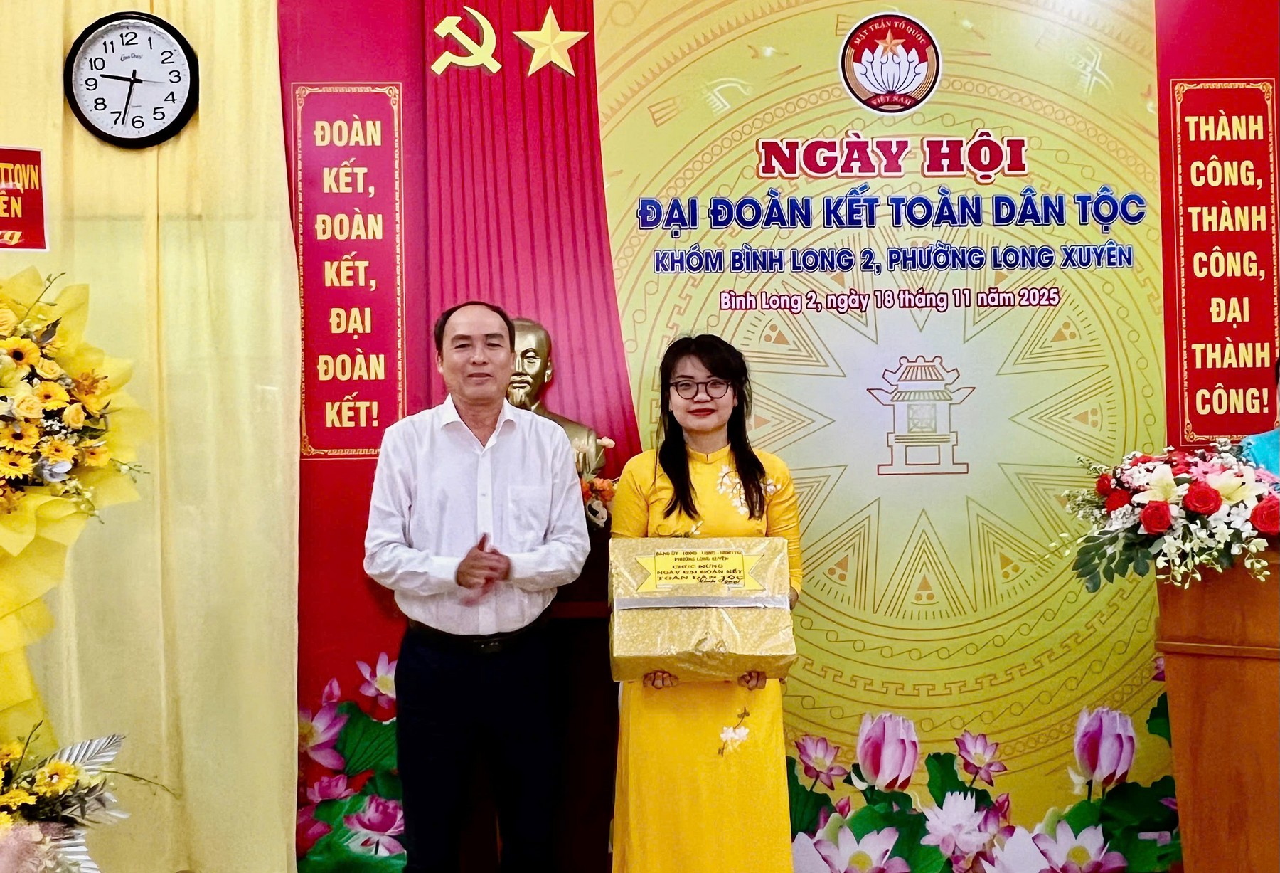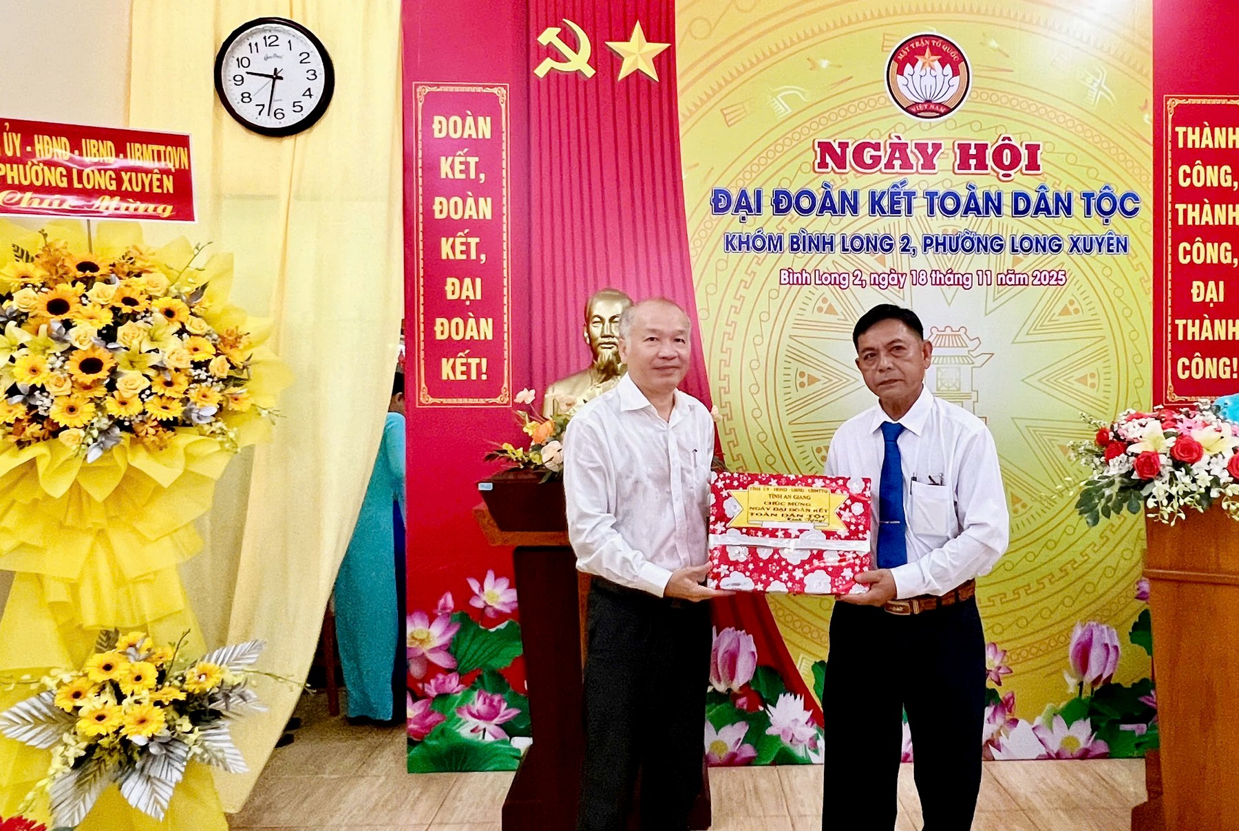 (Cổng TTĐT tỉnh AG)- Ngày 18/11, Ban Thường trực Ủy ban MTTQ Việt Nam khóm Bình Long 2 (phường Long Xuyên) tổ chức Ngày hội Đại đoàn kết toàn dân tộc, nhân kỷ niệm 95 năm Ngày thành lập Mặt trận Dân tộc Thống nhất Việt Nam – Ngày truyền thống MTTQ Việt Nam (18/11/1930-18/11/2025). Phó Bí thư Thường trực Đảng ủy Các cơ quan Đảng tỉnh An Giang Võ Nguyên Nam tham dự.
