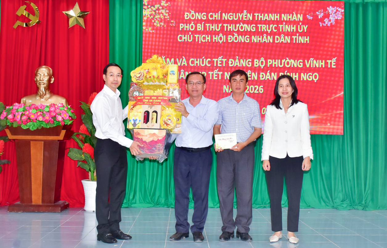 Đến thăm, chúc Tết Đảng ủy các phường Châu Đốc, Vĩnh Tế, Phó Bí thư Thường trực Tỉnh ủy, Chủ tịch HĐND tỉnh An Giang Nguyễn Thanh Nhàn đã thông tin những kết quả nổi bật trong nhiệm vụ phát triển kinh tế - xã hội tỉnh năm 2025, nhấn mạnh những nhiệm vụ trọng tâm trong năm 2026. Trên cơ sở đó, mong muốn các địa phương tập trung thực hiện các chỉ tiêu đề ra, đóng góp tích cực vào quá trình phát triển kinh tế - xã hội của tỉnh trong năm mới.